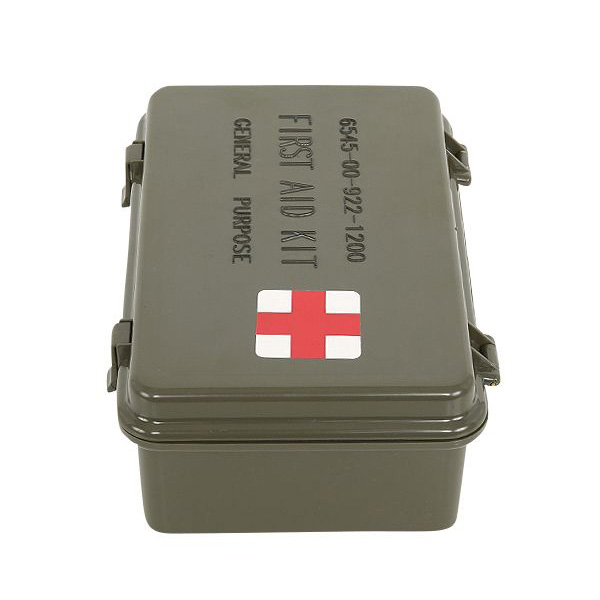 米軍実物放出のプラスチック製ファーストエイド・キットのボックスケース(救急箱)です。