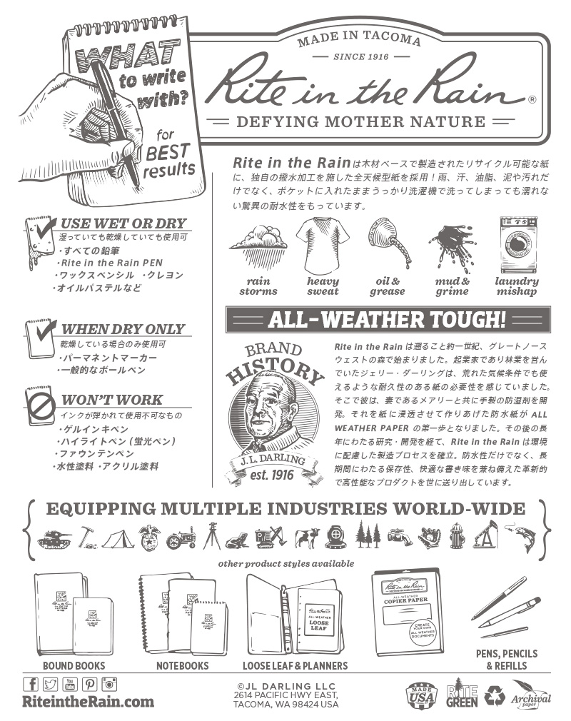 Rite in the Rainは木材ベースで製造されたリサイクル可能な紙に、独自の撥水加工を施した全天候型紙を採用!