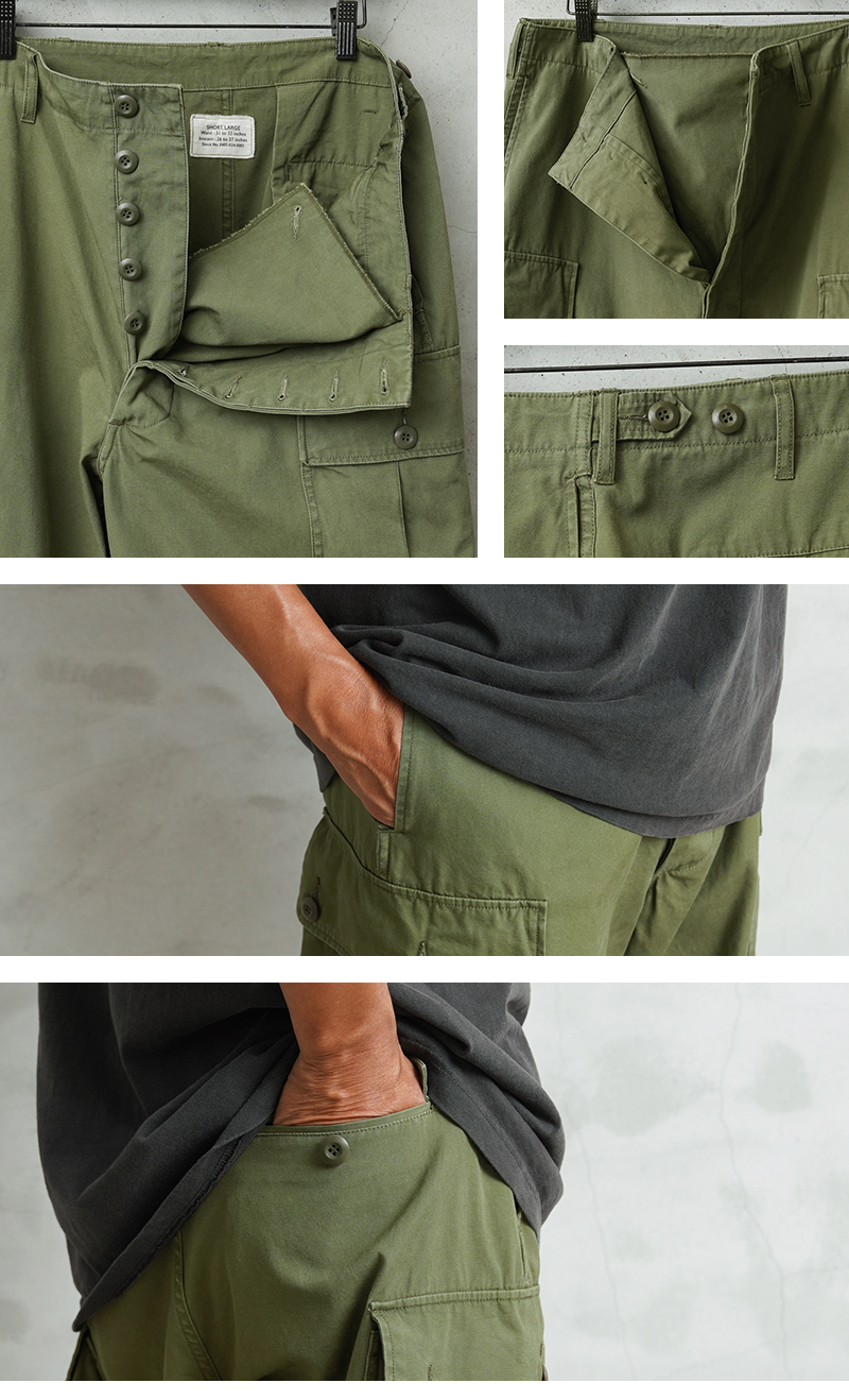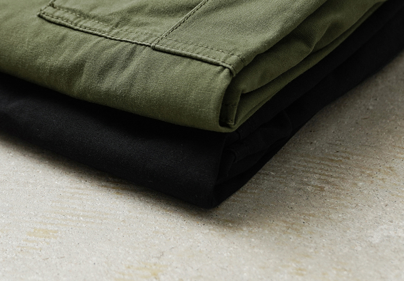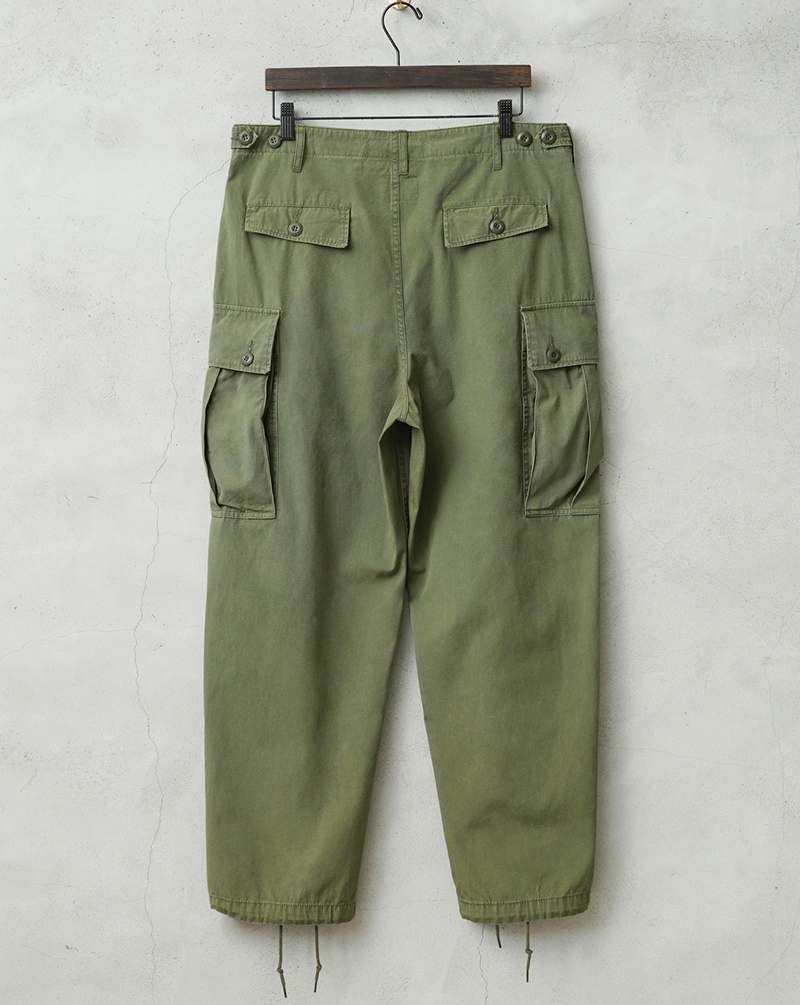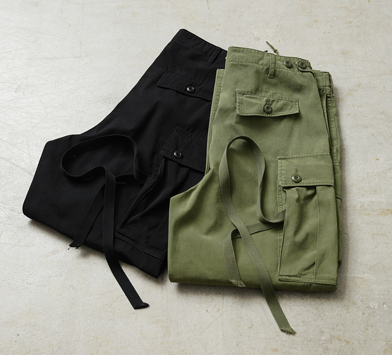 コットンポプリンを採用した軽い履き心地のカーゴパンツは、M-65の意匠を取り入れつつ、従来のファティーグパンツのエッセンスも両立した高いデザインを誇ります。現代のミリタリーファッションとしても非常に人気の高い理由として、高温多湿の中での着用を想定してるため日本の気候にもマッチし、着用期間が広いのも特徴です。