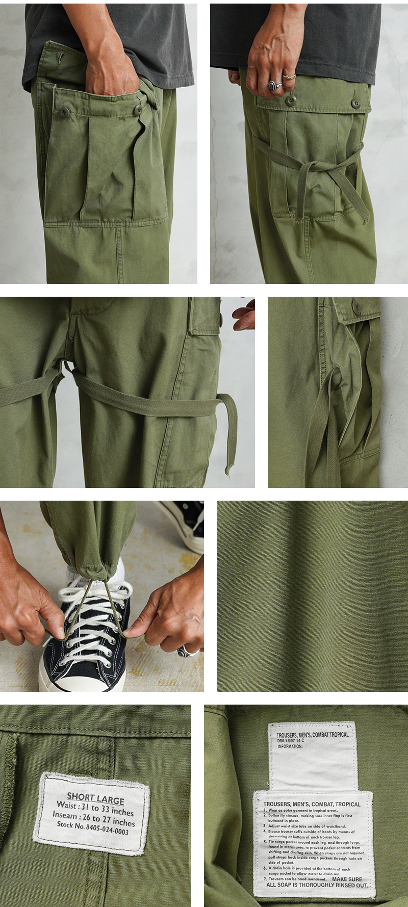 暑い時期にもぴったりなミリタリーカーゴとしてワードローブに加えていただきたいおすすめの一品です。