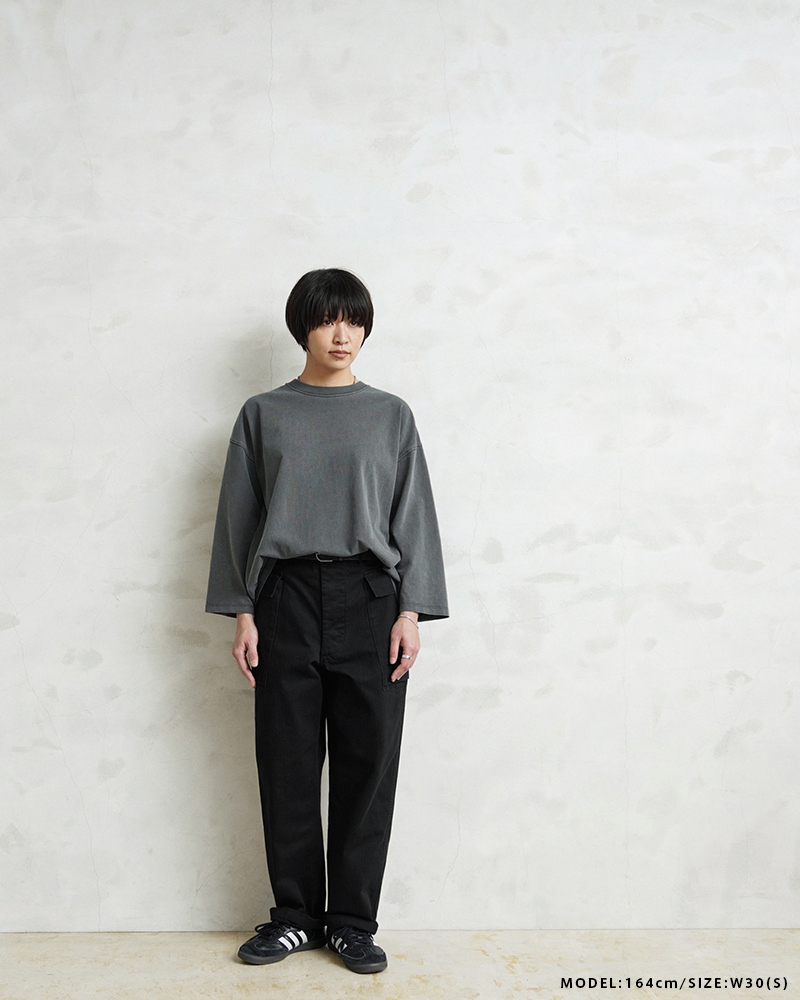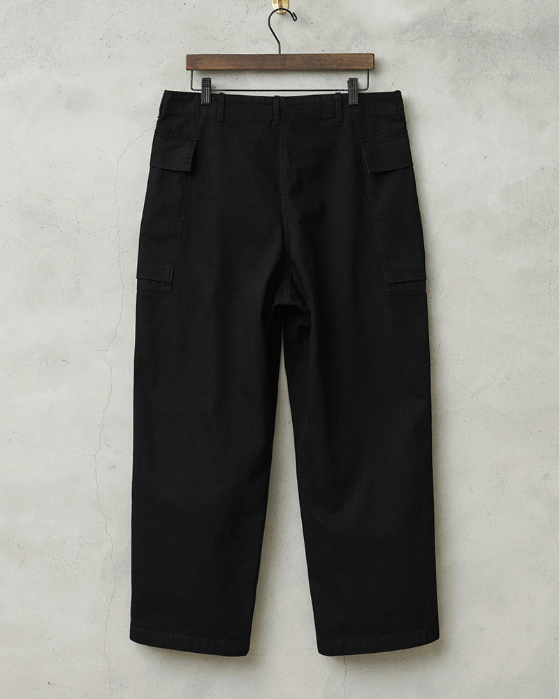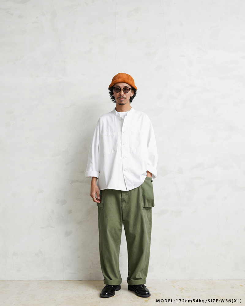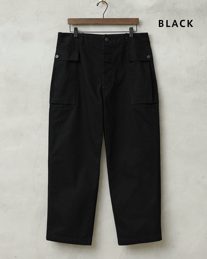 40年代のUS ARMYのHBTシリーズの中でも最も人気の高いM-43は、ジャケットと同様に大型のカーゴポケットを両サイドの腰部分に取り付けたユニークなデザインとなっています。
