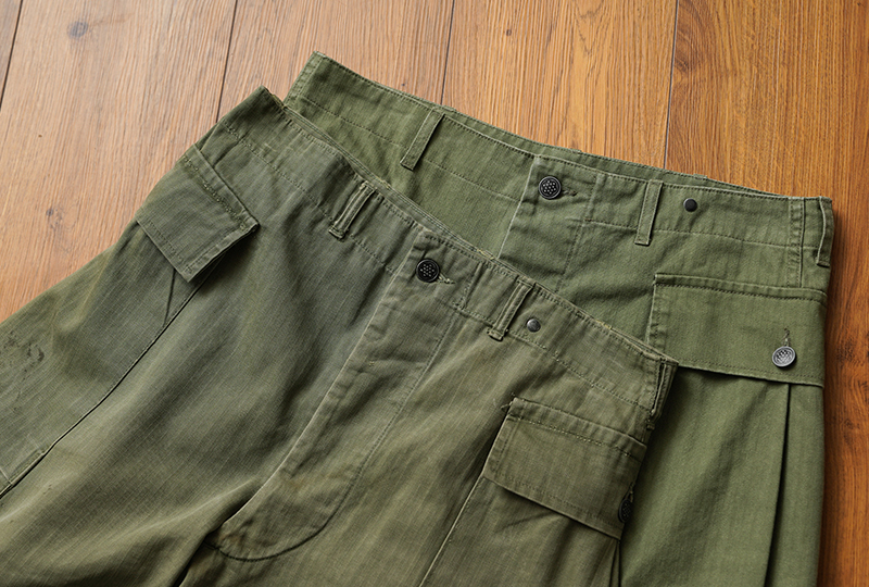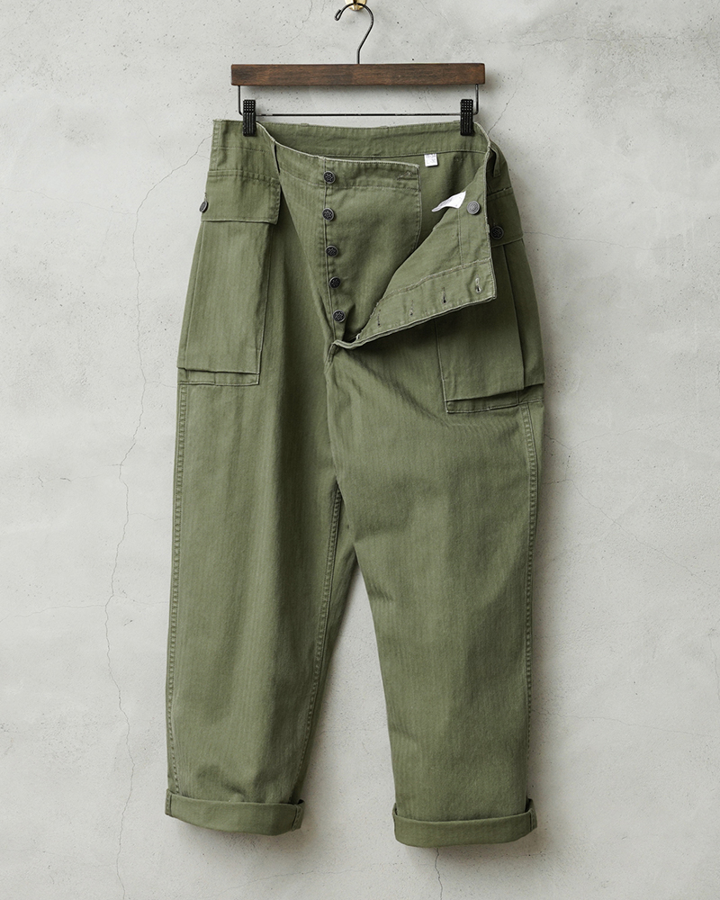 ヴィンテージ市場でも人気の高い、米陸軍のHBTプロダクトです。