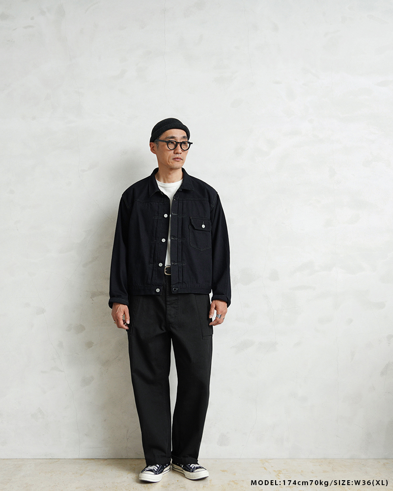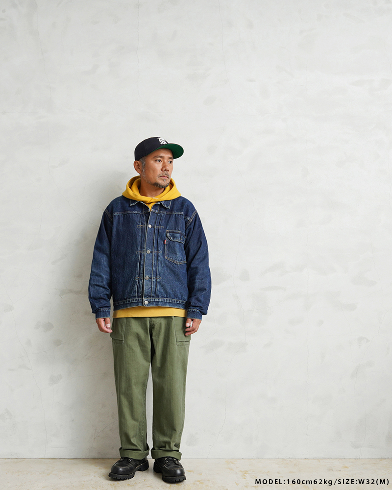 製品洗いを施すことで、最初から着こんだような風合いが特徴です。巻き縫いで仕上げられた各部にはパッカリングが浮き上がり、すでに着込んだような風合いを感じさせつつも、まだまだエイジングを楽しめる余地を残しており、自分らしい一着に育てることができます。