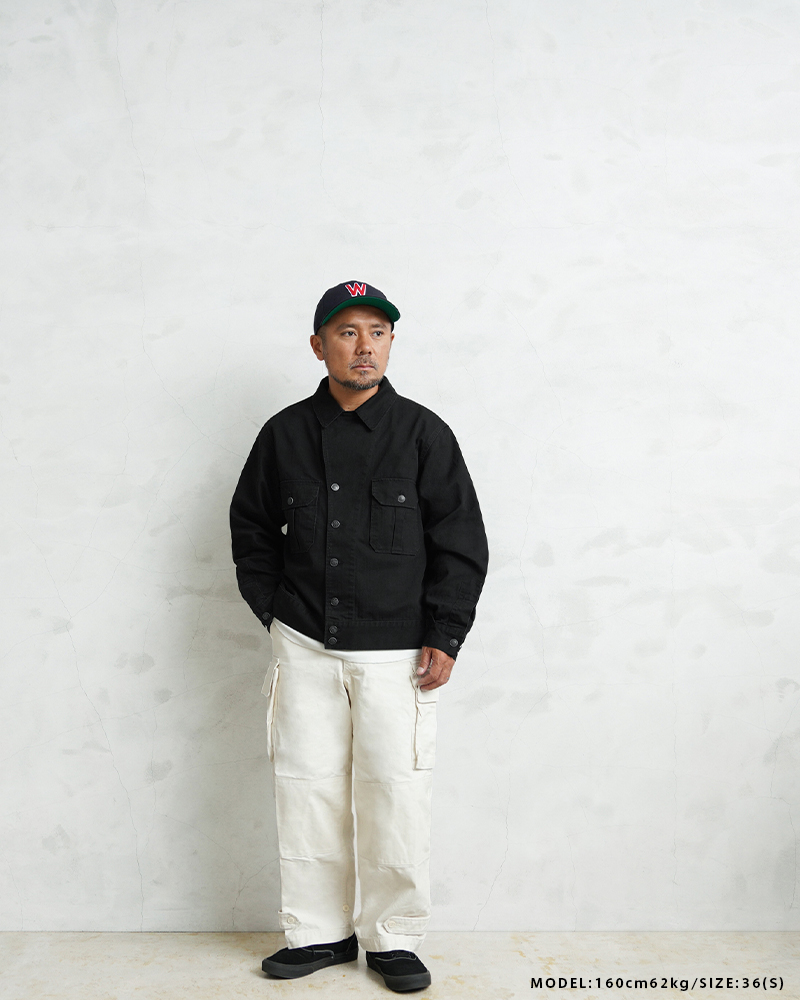 メタルの13スターボタンはブラックラッカーがくすんではがれた風合いも完全に再現しており、製品洗いのかかったHBT素材とマッチし、ヴィンテージと遜色のない仕上がりとなっています。