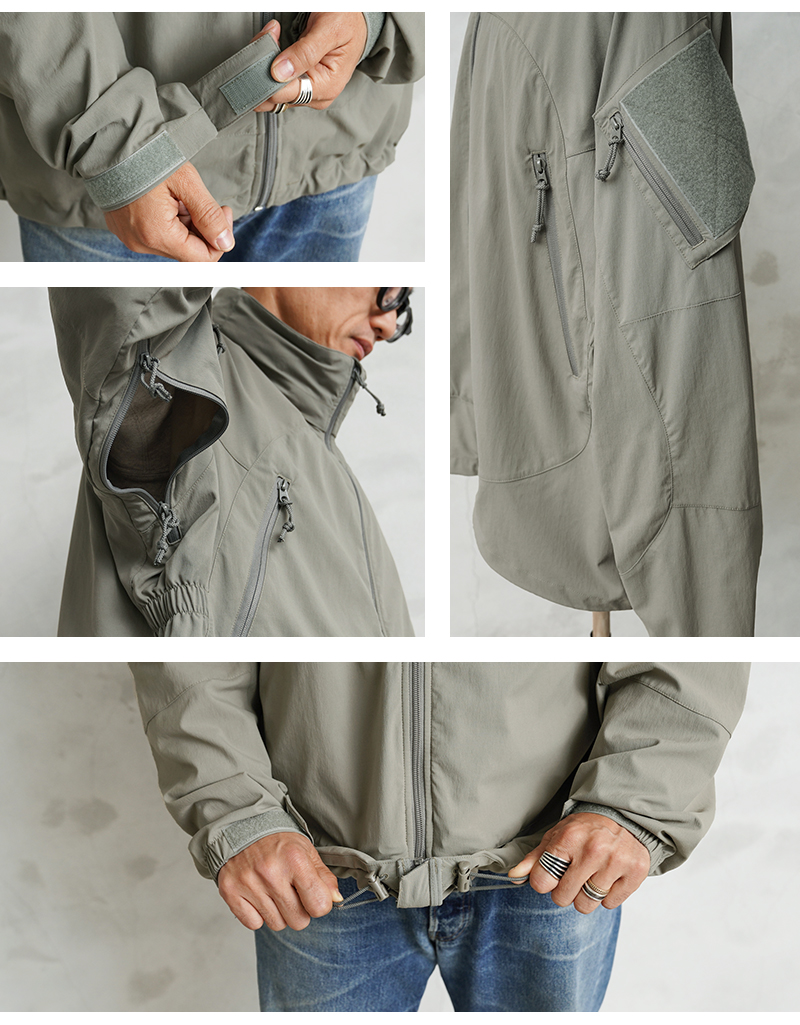 | 商品説明 | WAIPER.inc LEVEL5 ソフトシェルジャケット PERTEX UNLIMITED STRETCH FABRIC のご紹介です。 品番:WP1079 2000年代に米軍特殊部隊向けに開発されたものの、正式採用には至らなかった貴重なレイヤリングシステム「Military Advanced Regulator System (MARS)」。 このシステムは、ECWCSやPCUと同様、レイヤリングによる温度調整を目的とした設計思想が特徴です。現在ではコレクターアイテムとしても人気を集めるシリーズから、着用の幅が広いソフトシェル「LEVEL5ジャケット」を製作しました。 表地には、イギリスのPERTEX社がアウトドアメーカー以外にも展開する注目素材「PERTEX UNLIMITED(パーテックス・アンリミテッド)」を採用。この素材は、防水透湿性に優れたアウトドアやミリタリー分野のノウハウを活かしており、多くのブランドが採用する信頼性の高いファブリックです。アーカイブを参考に、生地の色味やストレッチ性を忠実に再現。柔らかすぎず適度なハリ感を持つストレッチ素材に仕上げました。 大型で収納力の高い両胸のジップポケットはメッシュ仕様のポケット袋を採用し、軽量化と通気性を確保。さらに、両袖のベルクロパネルや収納式フードなど、タクティカルなデザインとアウトドアに適したディテールを両立しています。これにより、機能性とデザイン性を兼ね備えた仕上がりとなっています。 軽量で着心地に優れたこのジャケットは、保温性はないもののウィンドシェルとしての活用が可能です。そのため、通年を通じて幅広いシーンで使用でき、タウンユースからアウトドアまで対応する優れたデザインとなっています。まさに「名作」と呼ぶにふさわしい一着です。 WAIPER.incでは、実物の魅力を忠実に継承しつつ、タウンユースでのスタイリッシュさとアウトドアでの機能性を兼ね備えた製品として仕上げました。 |