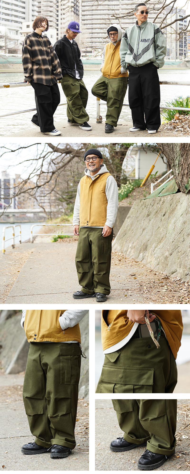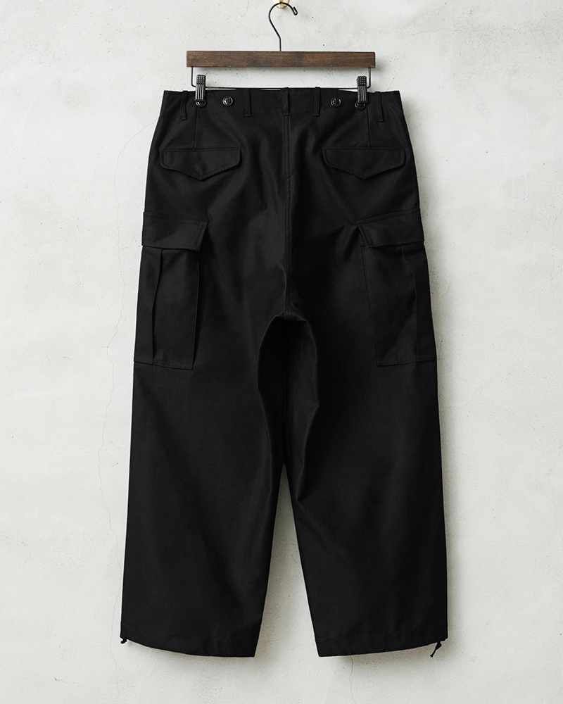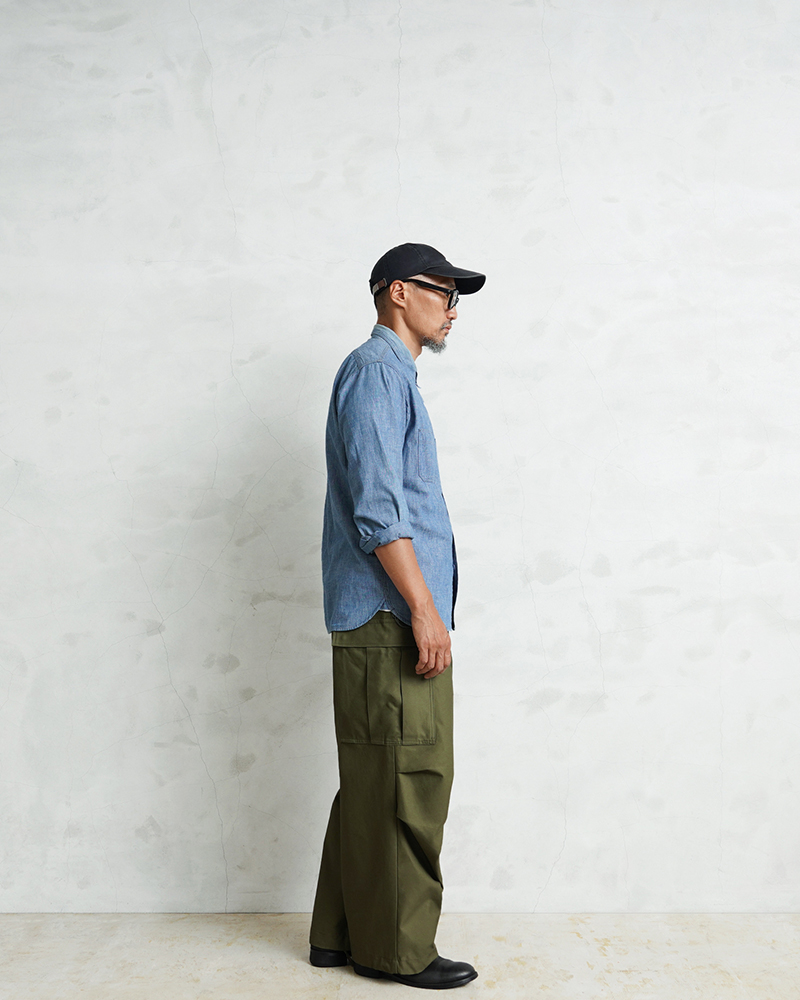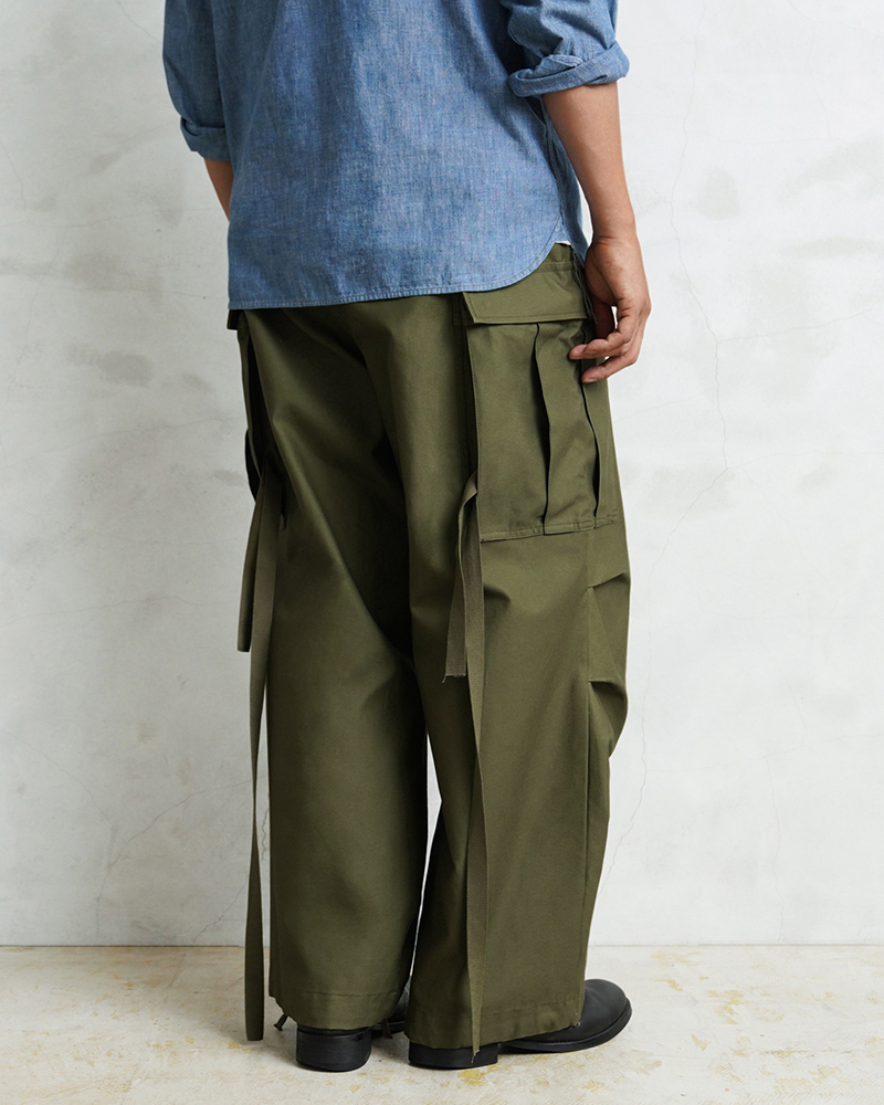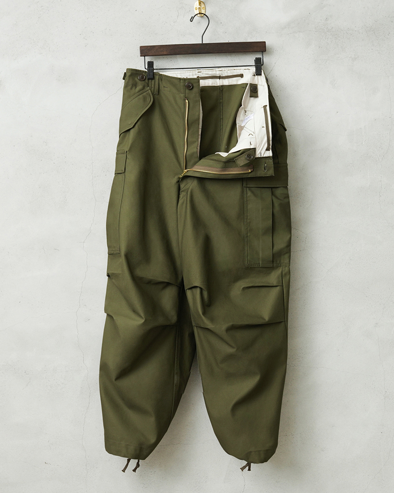 | 商品説明 | WAIPER.inc 米軍 M-51 フィールドカーゴパンツ USMC(米海兵隊)モデルのご紹介です。 品名:TROUSERS SHELL, FIELD, M-1951 品番:WP1108 名作M-51をベースに、米海兵隊向けに支給された希少モデルを忠実に再現した一本です。 現代カーゴパンツの原型とされるM-51パンツは、後継のM-65と並び米軍を象徴する名作。1950年代、朝鮮戦争期に採用された「M-51シリーズ」は、モッズコートとして知られるパーカーやフィールドジャケットなどと同型番で統一されたユニフォームラインで、過酷な環境を想定した着脱式ライナー装着機構を備えていました。 本作は、その中でも特に流通数の少ないUS MARINE CORPS(米海兵隊)仕様を再現。ウエスト部分には特徴的なタブ式のアジャスターを採用し、金属バックルを用いないシンプルな構造は、後年のジャングルファティーグパンツにも通じるミニマルな実用性を実現しています。ミリタリー愛好家の間でも“存在は知っていても現物にはなかなか出会えない”とされる、知る人ぞ知るUSMCバージョンです。 生地には、オリジナルで織り上げたコットンサテンを使用。着用と洗いを重ねることで風合いが増し、ヴィンテージさながらの経年変化を味わえます。レギュラーモデル同様にサスペンダーボタンを備えつつも、サイドアジャスターを廃してタブ式でサイズ調整が可能な仕様に変更。さらに、通常のM-51に見られる巻き縫い仕様の脇部分も、あえてステッチなしのシームにするなど、細部に至るまでリアルを追求しました。 米軍放出品の流通が減少する中でも、このUSMC仕様のM-51は特に入手困難。WAIPER.incはその価値に着目し、オリジナルを忠実に再現する形で現代に蘇らせました。 レングスはショートとレギュラーの2種類を展開。一本あれば確実に重宝する、ミリタリーウェアの王道にして異端の名作です。 |