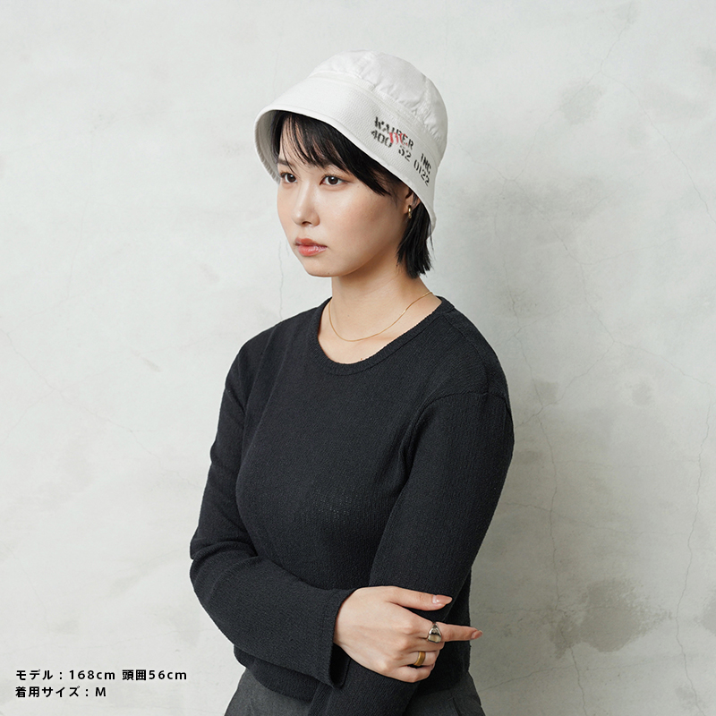 ・上記の頭囲数値はバイザー上部の内周計測になります。独特な形状により表記数値は小さめですが一般的な帽子のM、Lサイズと同じ感覚でお選びいただくのがおすすめです。