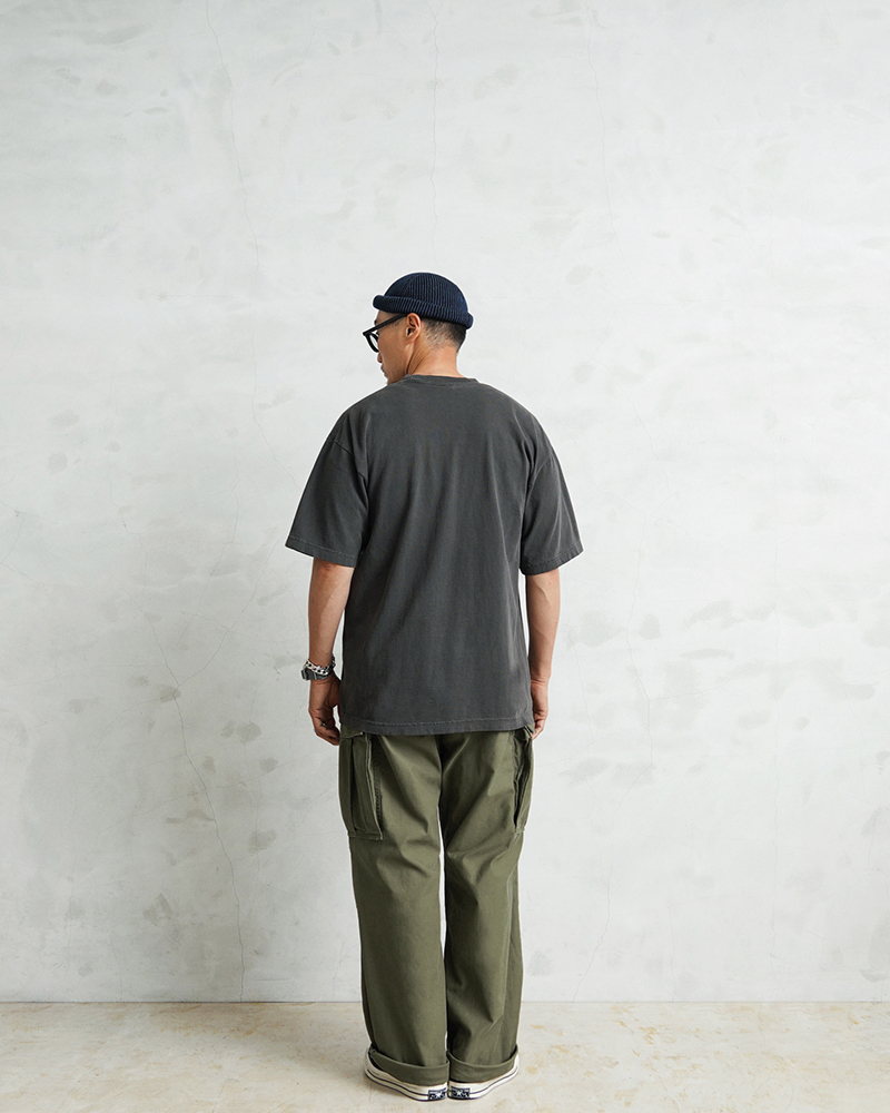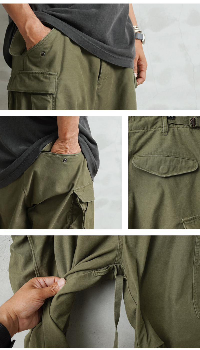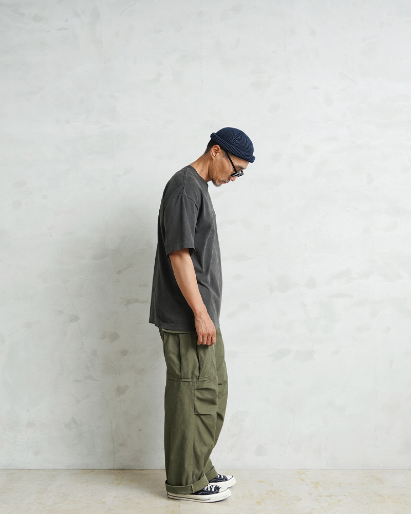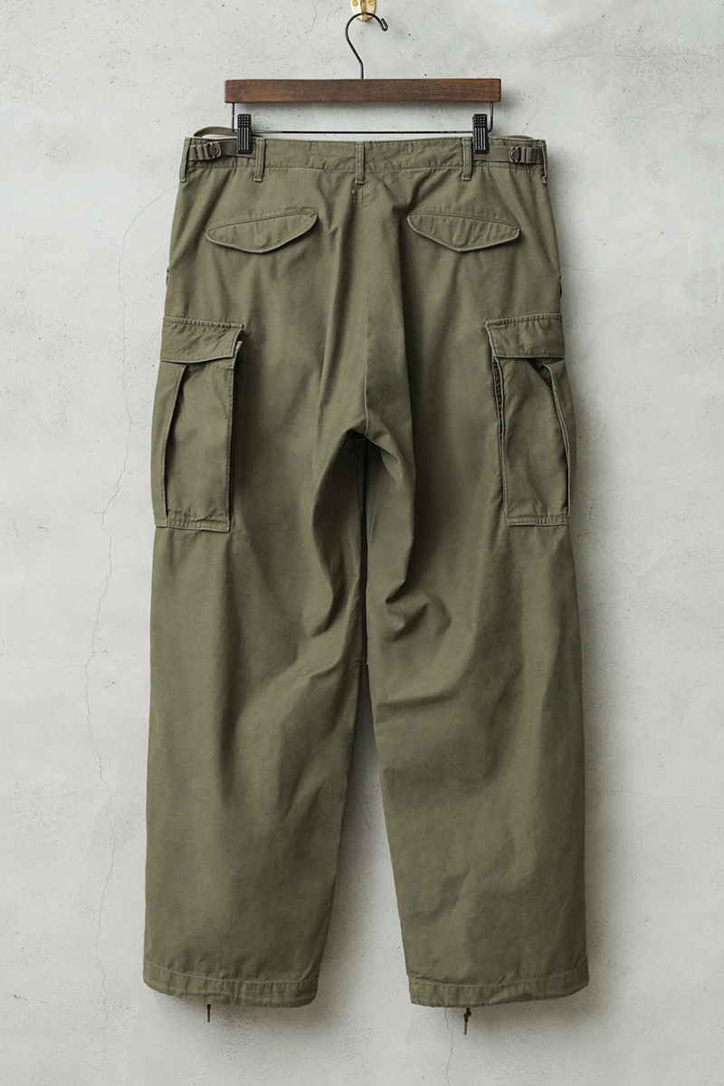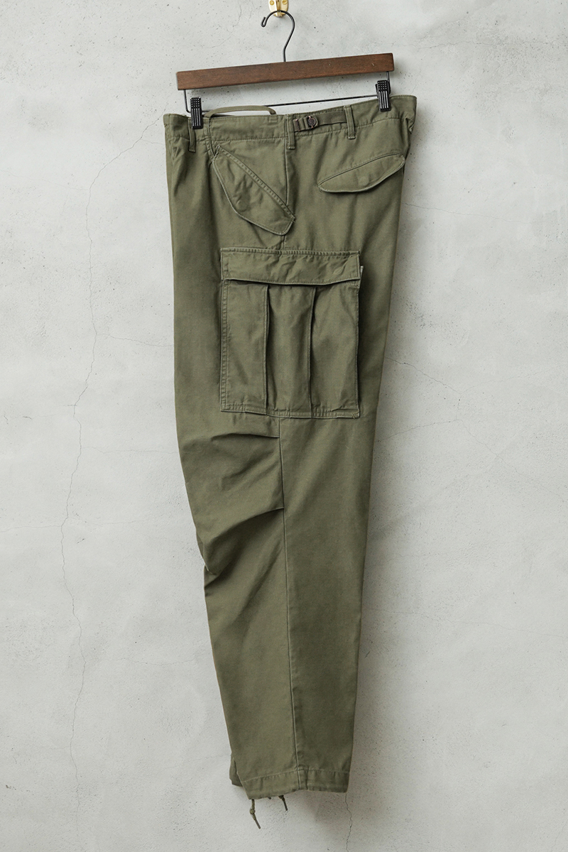 | 商品説明 | WAIPER.inc 米軍 M-65 フィールドカーゴパンツ 初期型 USED加工 のご紹介です。 品名:TROUSERS,MEN’S,FIELD,M-65 品番:WP111U 最も有名な軍パンと言っても過言ではない米軍のM-65パンツ。 カーゴパンツの代名詞ともいえるデザインは60年代に採用されたアイテムながら、今見てもまったく古臭さを感じさせない名作となります。実物品は現在出回ることもほとんどない昨今、随所にこだわりを持って再現させていただきました。 M-65フィールドカーゴパンツは、M-65フィールドジャケットと共に1965年に制式採用された米軍の野戦服。朝鮮戦争で使用されたM-51フィールドカーゴパンツの後継として開発され、BDUへのリプレースが始まる1981年初頭まで第一線で活躍しました。 元々は寒冷地帯での防寒用に作られており、下にもう一枚履けるよう太めのシルエットが特徴的。コットンとナイロンを混紡したサテン生地は実物を見本にオリジナルで製作させていただきました。部材やディテール、ヴィンテージ感のあるアルミのファスナーと、細部まで作り込んだ自信作となっています。 寒冷地帯でのキルティングのライナーの装着も想定して太めの作りとなっており、どっしりとしたミリタリーテイストを感じさせるデザインとなっています。 こちらはご好評いただいておりますWP111 M-65カーゴパンツをベースに加工を施し、穿き込んだ雰囲気をはじめから楽しめるエイジングモデル。 有名ブランドの製品加工を数多く手掛ける国内の有名工場にて二次加工を行っています。 タフなコットンナイロンを採用したM-65は本来が堅牢なパンツゆえに、穿きこむのに一苦労という方も多いはず。穿いたその日から肌に馴染むUSED加工が待望の登場です。 |