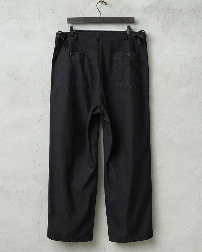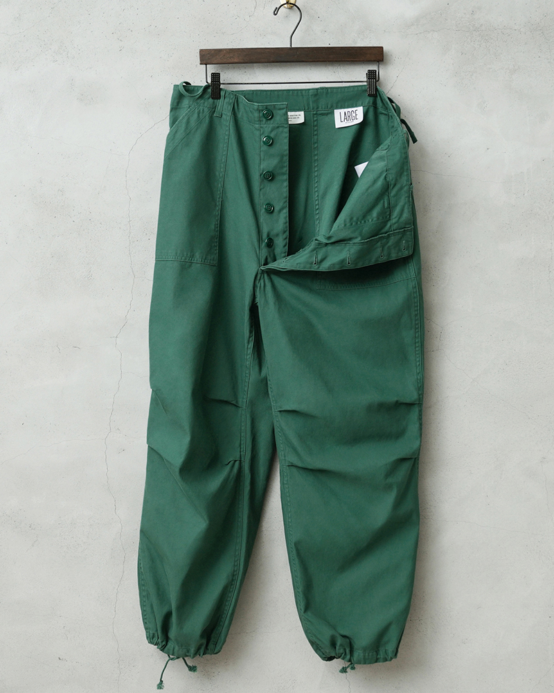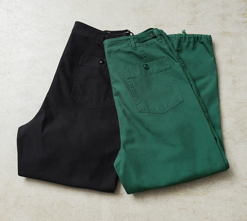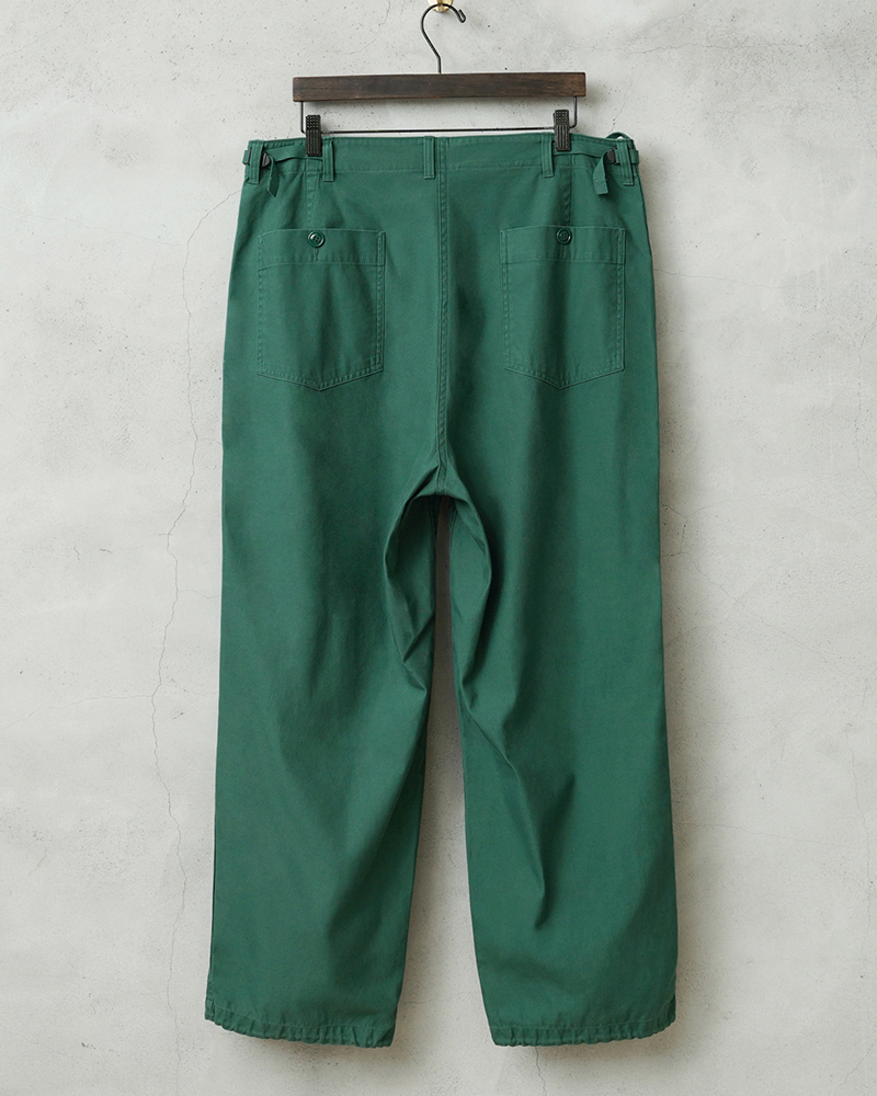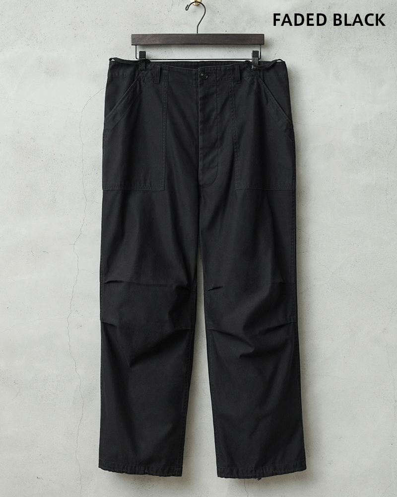 | 商品説明 | WAIPER.inc 米軍 U.S.ARMY AGGRESSOR PANTS アグレッサーパンツのご紹介です。 品名:TROUSERS,MEN’S,AGGRESSOR 品番:WP1122 米軍の仮想敵部隊「AGGRESSOR FORCES(アグレッサーフォース)」が使用していたアグレッサーパンツを、WAIPER.incで忠実にリプロダクトしました! 製造された数量も圧倒的に少なく、現存する実物は非常に貴重な存在となっています。特にパンツは入手困難なアイテムです。 米軍のAGGRESSOR(アグレッサー)という仮想敵部隊の起源は1946年に遡ります。第二次世界大戦やその後の冷戦をコンセプトに、ドイツ軍と旧ソ連軍などを大まかなモデルにした架空の仮想敵部隊を演じる専門ユニットとして誕生しました。1978年まで実行されていた訓練プログラムですが、現在ではOPFOR(オプフォー)と略されるOpposing Force(オポージング フォース)がその役割を引き継いでいます。 今回リプロダクトしたアグレッサーパンツは、1964年に製造された貴重なアーカイブを基に再現。コットンバックサテン素材に、“GREEN SHADE 255(グリーンシェード 255)”という印象的なアグレッサーグリーンを再現し、ブラックは、真っ黒ではなく、フェードし始めたぐらいの雰囲気の良い“FADED BLACK(フェイデッドブラック)”に仕上げています。 有名な「M-65フィールドカーゴパンツ」が誕生した年代と同時期に製造されたアイテムのため、ゆったり穿けるシルエットに、膝の特徴的なタックや裾のドローコード、ウエストのアジャスターなどもこの年代の米軍カーゴパンツのディテールが踏襲されています。 さらに、ベイカーパンツで知られる「OG-107 ユーティリティパンツ」で使用されていたバックサテンや特徴的なフロント部分の大きなパッチポケット、バックポケットにはフラップなしでボタン留めのストレスなく使えるデザインなので、米軍の歴代の名作パンツのデザインが組み込まれています。 適度にアタリを出したウォッシュ加工に加え、ラベルの素材やデザインなども実物のように再現度の高い仕上がりになっています。M-65パンツよりもライトな質感の柔らかなコットンバックサテン素材は、カーゴポケットも無いので軽く、裾を絞ればサンダルやスニーカーとも好相性。シーズンを問わず活躍する万能な一本です。 歴史的背景のなかで限られた時代に存在したアイテムですが、現代のスタイルにも自然に馴染む、そんな希少なミリタリートラウザーズを再現しています! |