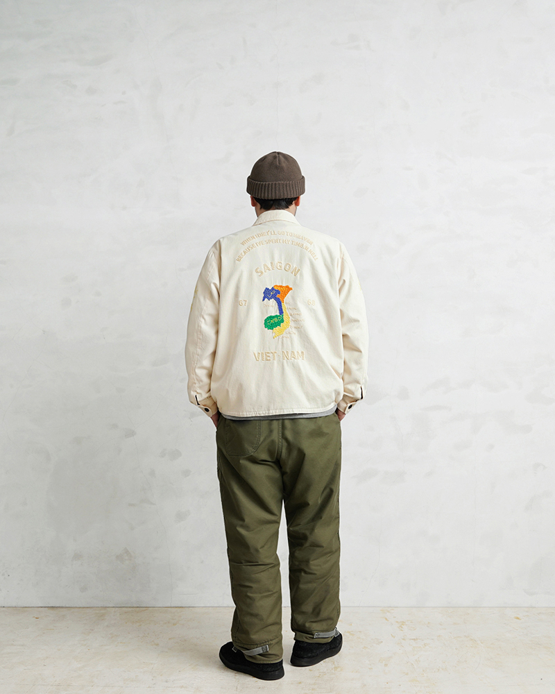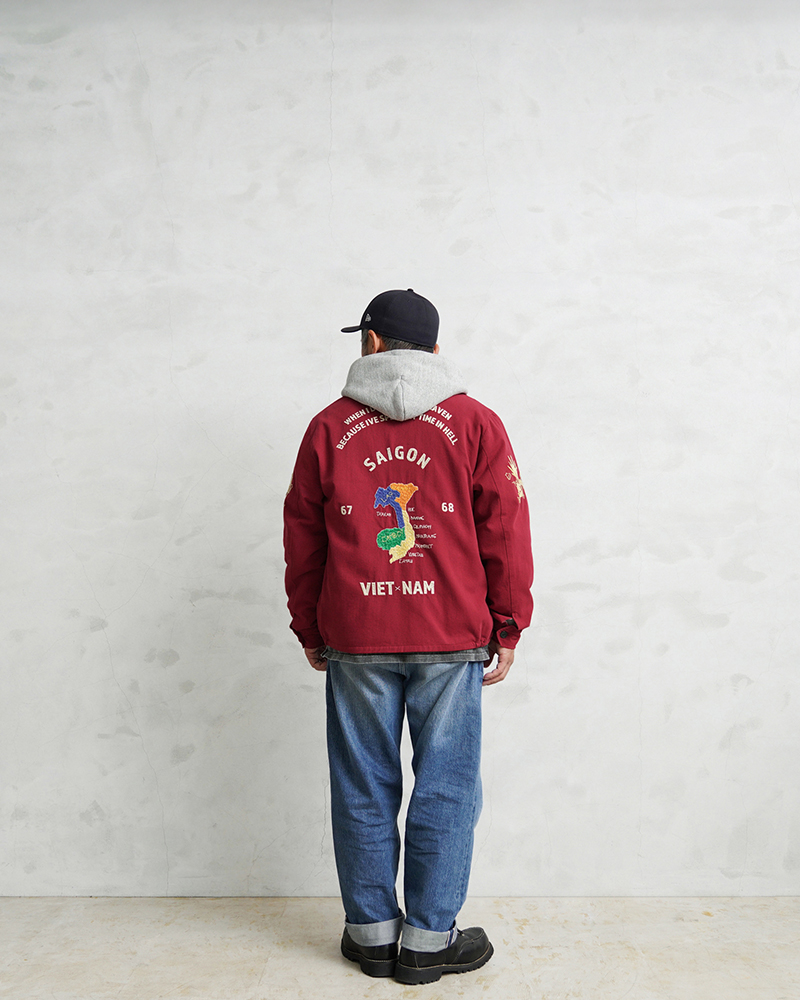 | 商品説明 | WAIPER.inc SOUVENIR VIETNAM JACKET ベトナムジャケット のご紹介です。 品番:WP115 ベトナムジャケット(ベトジャン)は、ベトナム戦争中にアメリカ軍の兵士たちが戦地での経験を記録し記念品として作成したカスタムジャケットであり、母国への土産としてデザインされたミリタリーアイテムとして独自の歴史的背景を持っています。 戦争の過酷さや故郷への郷愁、そして兵士一人一人のアイデンティティを反映した個性的なアイテムであり、現在でも特別なジャケットとして広く知られています。 今回、ヴィンテージのベトジャンに施された刺繍を再現し、背面には「ベトナムの地図」、そしてフロントや両腕にはベトナムの吉祥柄である「虎」や「龍」、さらに「福」の文字がふっくらとした太めの糸で描かれています。 当時のヴィンテージ品はシルエットに難があるものが多いため、素材を分析し再現する一方で、サイズ感は現代的にモディファイしました。 古着市場ではヴィンテージのベトジャンは非常に高額なスペシャルピースとなっていますが、ミリタリーリプロダクトを数多く手がけるWAIPERの一着は、多くの方にご満足いただけるクオリティに仕上げています。 経年変化を楽しめるコットン素材の風合いは、長く愛用できる一着です。 |