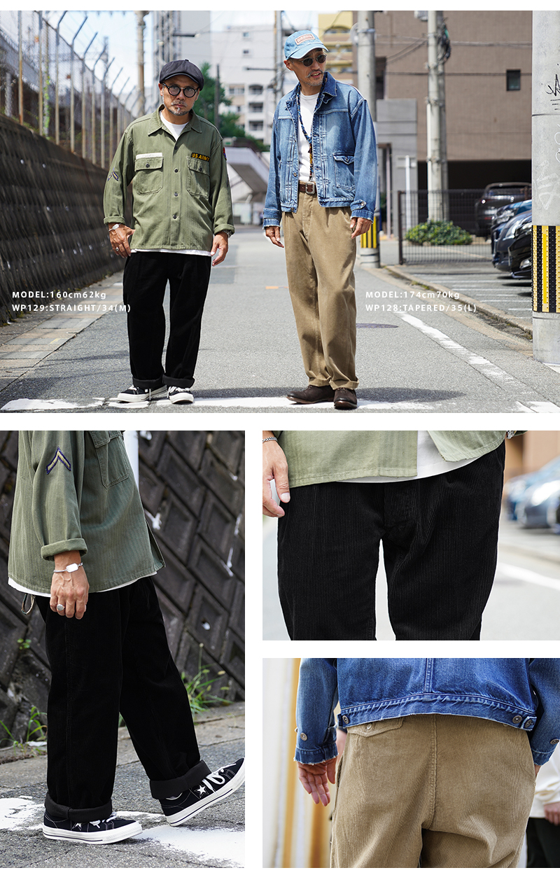 | 商品説明 | WAIPER.incフランス軍 1950~60年代 M-52 ツータック コーデュロイ トラウザー テーパードシルエット のご紹介です。 品番:WP128 ご好評いただいておりますWP69 フランス軍 M-52 チノトラウザーデザインを、実は17世紀のフランスを起源とし、現在はカジュアルスタイルの定番としておなじみのコーデュロイ生地で仕上げた一本が登場です。こちらのWP128はWP69でご好評いただいている、ツータックデザインとウエストから裾にかけてテーパードしたシルエットをそのまま踏襲。スニーカー、ブーツ、ローファーなど様々なシューズと相性がよく、ロールアップスタイルも作りやすいアイテムです。 縦に走る畝と独特の毛羽立ちから感じられるやわらかい質感が魅力のコーデュロイ生地。日本では秋冬向けと思われがちなコーデュロイ生地ですが、実はアメリカ、特に西海岸地域では夏に履くための生地として作られています。コーデュロイはカットパイルと呼ばれるパイル地です。非常に肌あたりがよく、日焼けした肌などにも優しいため、サーフィンなどが盛んな西海岸では暑い季節にも重宝されているそうです。 畝の太さによって太コール、中コール、細コール、極太のものは鬼コールといった呼び名がありますが、こちらの一本には定番として使いやすい中コール生地を使用。履いた時に軽快さも感じられる、ほど良いウェイトで通年ご愛用いただける一本になっています。 特徴である畝の凹凸に空気を蓄えることで断熱効果を発揮し暖かさもキープしてくれるので、もちろん冬場にも持ってこいですが、さらっとした内側の肌触りに吸湿性も持ち合わせているため、どの季節にも最適な印象です。 サイドポケット、フラップ付きのバックポケットを配した、コーデの定番として活躍するシンプルな4ポケデザイン。ツータックデザインに股下にはガゼット付きで動きやすさがあるのもポイントです。 コットンツイルのWP69と同じく履きこむことで現れる経年変化も楽しみなところ。冬物のイメージが強いコーデュロイですが、オールシーズン活躍してくれる魅力的なテキスタイルとして再認識していただける一本ではないかと思います。 |