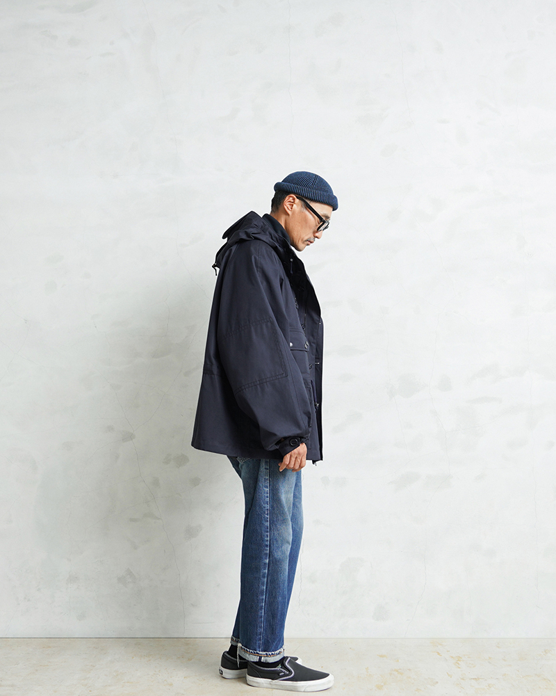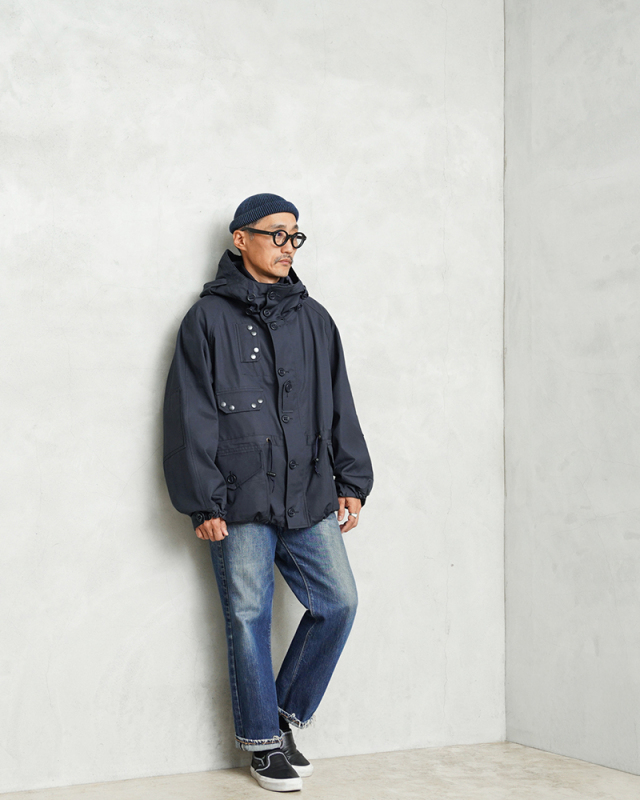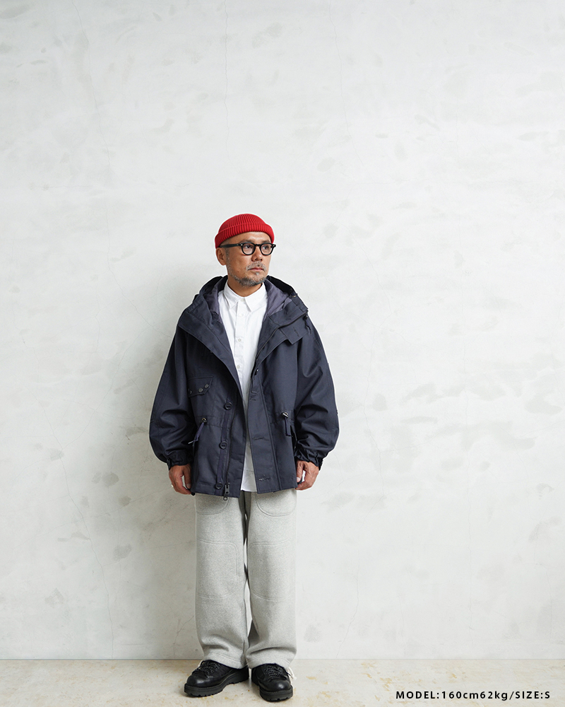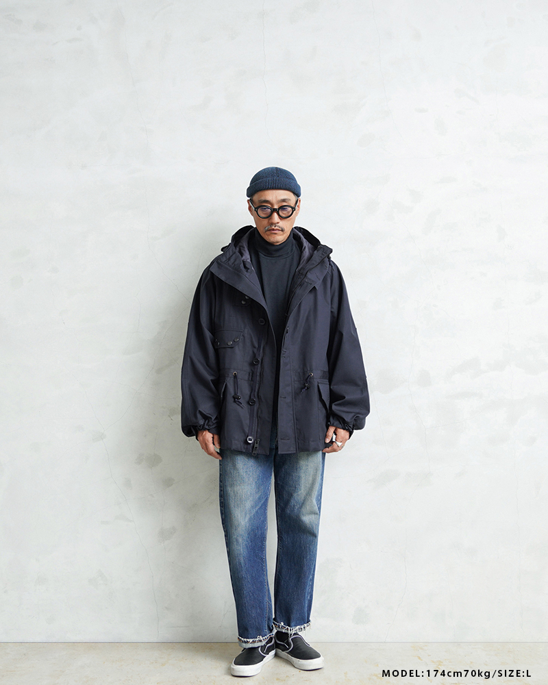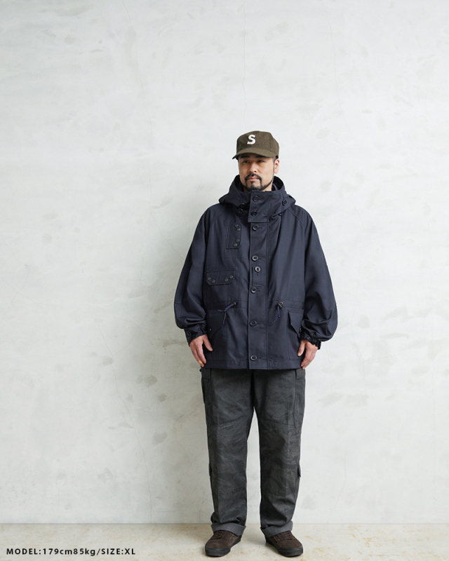 | 商品説明 | WAIPER.inc イギリス軍 ROYAL NAVY ベンタイル パーカ フルオープン 日本製 のご紹介です。 品名:ROYAL NAVY VENTILE SMOCK PARKA 品番:WP150 1960年代から1990年代にかけて、イギリス海軍の航空母艦で戦闘機の離着陸をサポートするオペレーター用に開発されたスモックパーカ。 素材には、このモデル最大の特徴であるベンタイルファブリックを採用。当時のアーカイブをもとに、当店オリジナルのアレンジとしてフルジップ仕様へと再設計しました。 前立て部分やフードのボタンには、イギリス軍アイテムで多用されるスロットボタンを採用。違和感のない仕上がりになっているのは、英国軍らしいディテールに落とし込んでいるからこそ。 フロントのファスナーは金属製のダブルスライダーを採用し、前を開けて軽く羽織る着こなしはもちろん、裾側だけを開けてAラインシルエットを作ることも可能です。 首元のフードには本来チンストラップが備わりますが、日常使いにはややオーバースペックと判断し、あえて省略。一方で、イヤーマフ装着を想定した独自のギミックはしっかり踏襲しています。 フロント胸元に配置された通信機器ケーブル固定用のフラップ下には、小型ポケットを新たに追加。実用性を高め、現代的な利便性のあるディテールへと昇華させました。 ゆとりのあるラグランスリーブのシルエットは、ジャストサイズでも、オーバーサイズでも雰囲気よく着こなせる懐の深い設計です。 素材から縫製まで、すべて国内生産にこだわっています。要となるベンタイルは国産テキスタイルメーカー・Daiwaboのファブリックを採用。超高密度に織り上げた生地は、耐水圧・撥水・透湿・通気性などの基準をクリアし、綿100%ながら高い透湿防水性を実現。ベンタイル本来の性能を忠実に再現しています。 数多くのデザイナーにサンプリングされ、現代のファッションシーンにも大きな影響を与える名作ミリタリーウェアを、より取り入れやすいフルオープンスタイルで再構築した高品質な一着です。 MADE IN JAPAN |