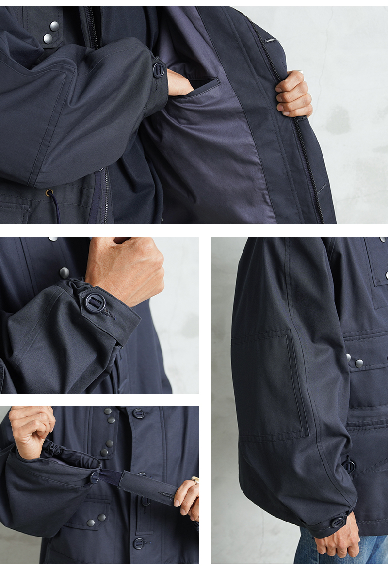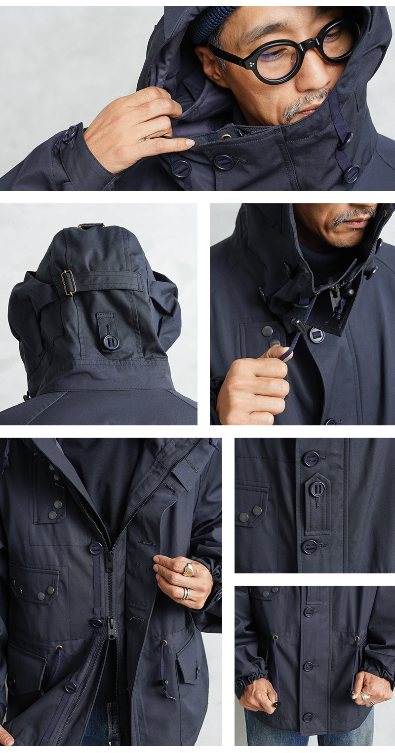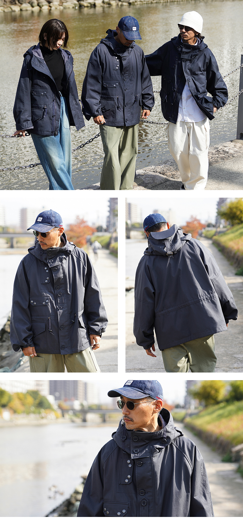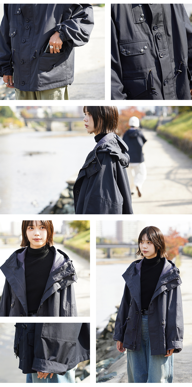 | 商品説明 | WAIPER.inc イギリス軍 ROYAL NAVY ベンタイル パーカ フルオープン 日本製 のご紹介です。 品名:ROYAL NAVY VENTILE SMOCK PARKA 品番:WP150 1960年代から1990年代にかけて、イギリス海軍の航空母艦で戦闘機の離着陸をサポートするオペレーター用に開発されたスモックパーカ。 素材には、このモデル最大の特徴であるベンタイルファブリックを採用。当時のアーカイブをもとに、当店オリジナルのアレンジとしてフルジップ仕様へと再設計しました。 前立て部分やフードのボタンには、イギリス軍アイテムで多用されるスロットボタンを採用。違和感のない仕上がりになっているのは、英国軍らしいディテールに落とし込んでいるからこそ。 フロントのファスナーは金属製のダブルスライダーを採用し、前を開けて軽く羽織る着こなしはもちろん、裾側だけを開けてAラインシルエットを作ることも可能です。 首元のフードには本来チンストラップが備わりますが、日常使いにはややオーバースペックと判断し、あえて省略。一方で、イヤーマフ装着を想定した独自のギミックはしっかり踏襲しています。 フロント胸元に配置された通信機器ケーブル固定用のフラップ下には、小型ポケットを新たに追加。実用性を高め、現代的な利便性のあるディテールへと昇華させました。 ゆとりのあるラグランスリーブのシルエットは、ジャストサイズでも、オーバーサイズでも雰囲気よく着こなせる懐の深い設計です。 素材から縫製まで、すべて国内生産にこだわっています。要となるベンタイルは国産テキスタイルメーカー・Daiwaboのファブリックを採用。超高密度に織り上げた生地は、耐水圧・撥水・透湿・通気性などの基準をクリアし、綿100%ながら高い透湿防水性を実現。ベンタイル本来の性能を忠実に再現しています。 数多くのデザイナーにサンプリングされ、現代のファッションシーンにも大きな影響を与える名作ミリタリーウェアを、より取り入れやすいフルオープンスタイルで再構築した高品質な一着です。 MADE IN JAPAN |