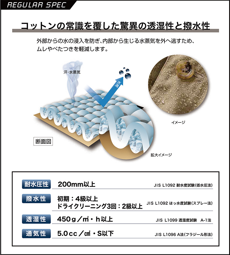 | 素材 | 表地:VENTILE®(ベンタイル)コットン100% 裏地:コットン100% |