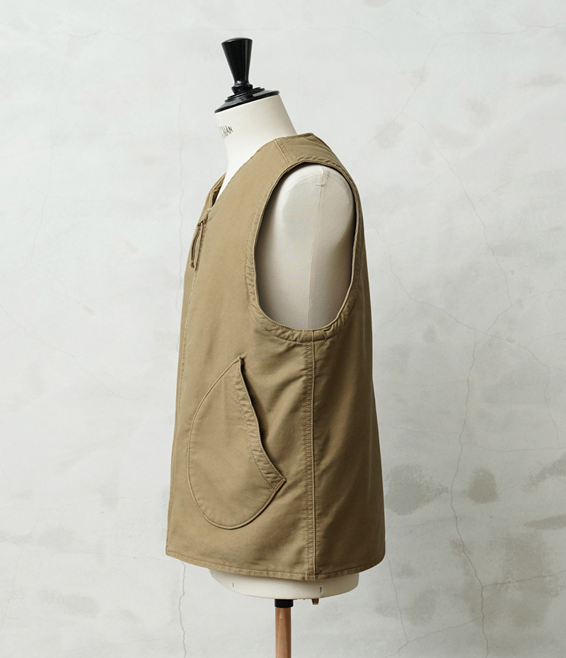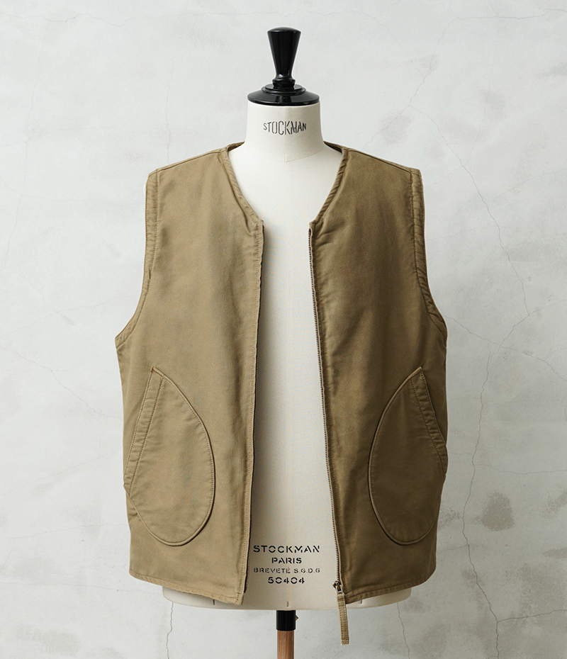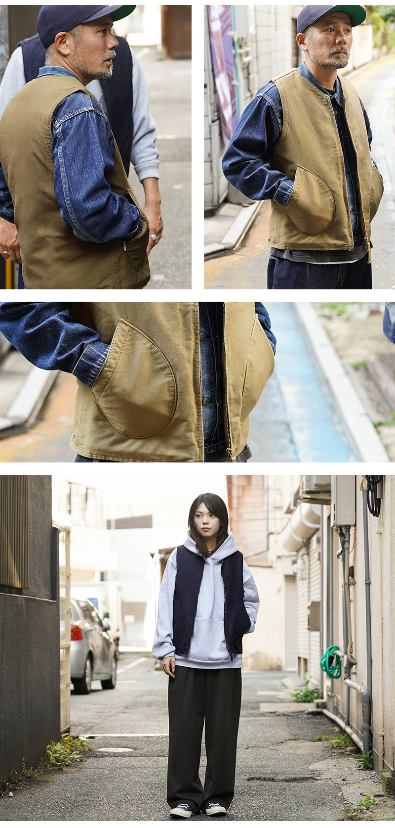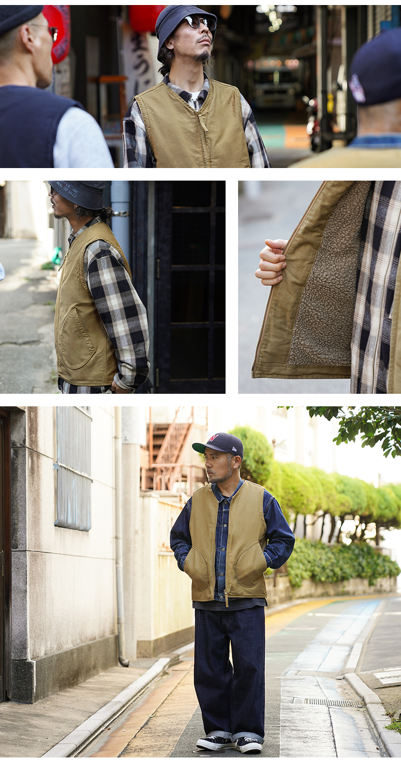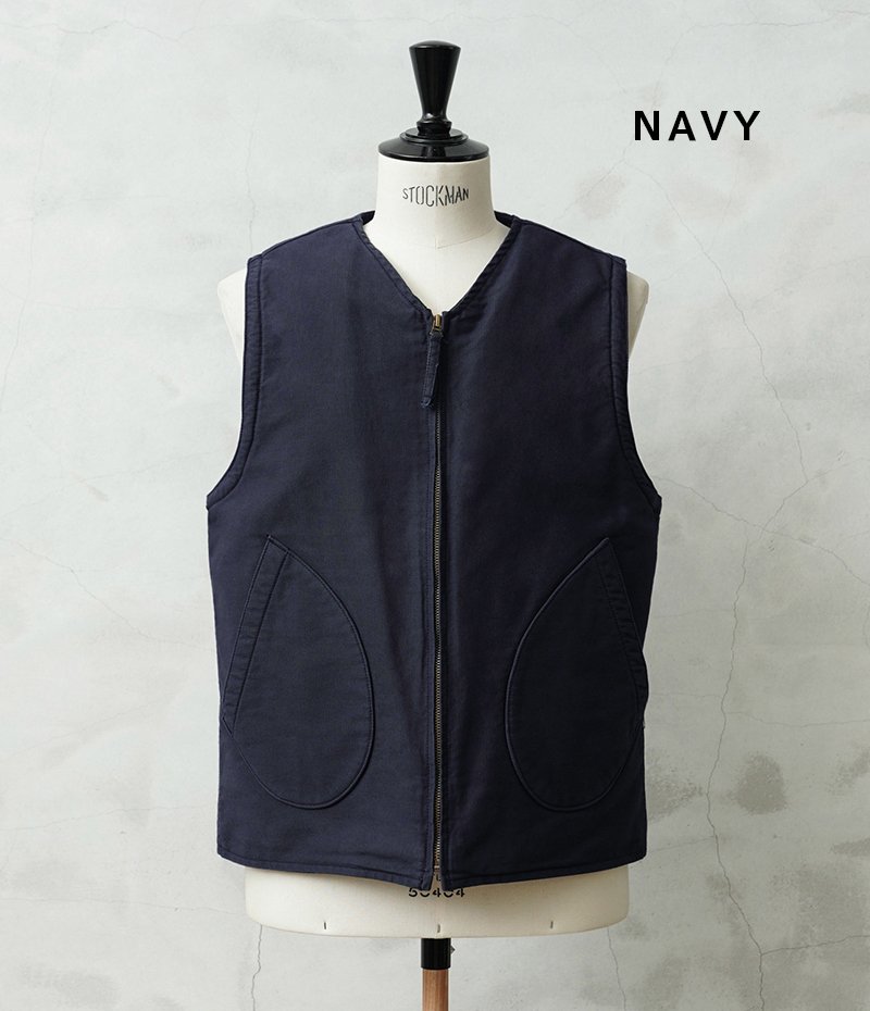 | 商品説明 | WAIPER.inc 米海軍 U.S.NAVY N-1 デッキベスト のご紹介です。 制式名称:N-1 DECK JACKET 品番:WP29 米海軍(U.S.NAVY)が生んだ傑作として名高い「N-1デッキジャケット」。 同じ素材を用いた40年代に存在したベストを製作しました。 デッキベストという名が示すとおり、アメリカ海軍の甲板作業用として採用されたミリタリーウェア。 N-1と同様に冬の海上における猛烈な寒さに耐えられるようにデザインされた堅牢な素材はタフな生地と防寒性を両立します。 表地にはジャングルクロスと呼ばれる高密度に織られたコットンファブリックを採用。着こむほどに体に馴染む風合いが魅力です。 防寒性に優れたライニングはアルパカを数年着込んだような、ボアフリースを使用。肌触りもよく、ウール特有のチクチク感が無く直接肌に触れても気持ちの良い着心地となっています。 アウターを着るにはまだ早いが寒さが気になるときに重宝するベストはネルシャツやサーマルの上からシンプルに合わせるもよし、レザーや薄手のジャケットなどに保温性を加えるレイヤードもおすすめです。 デニムやチノパンなど定番のボトムスとも相性抜群なので、普段の着こなしに羽織るだけでサマになるベストとなっています。 |