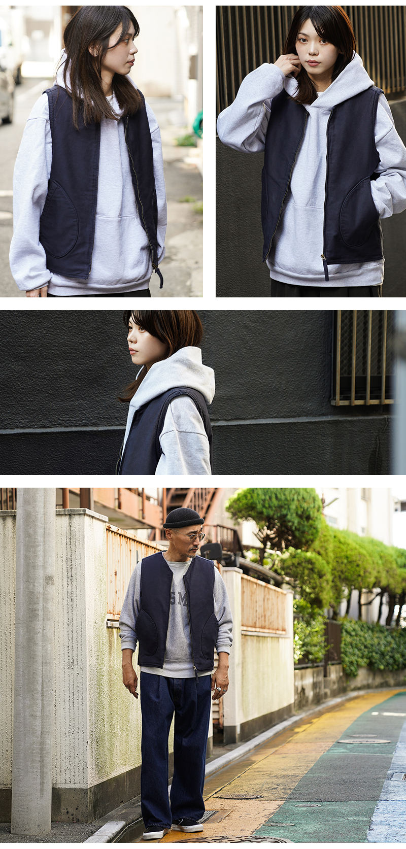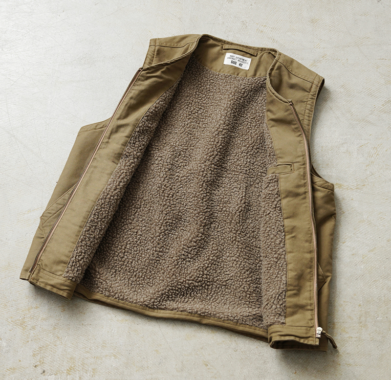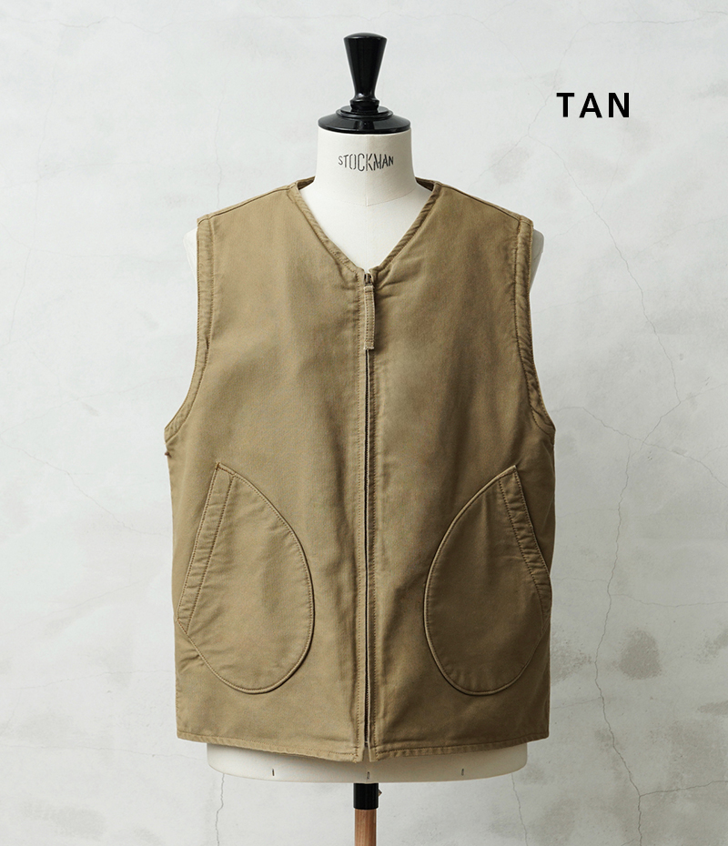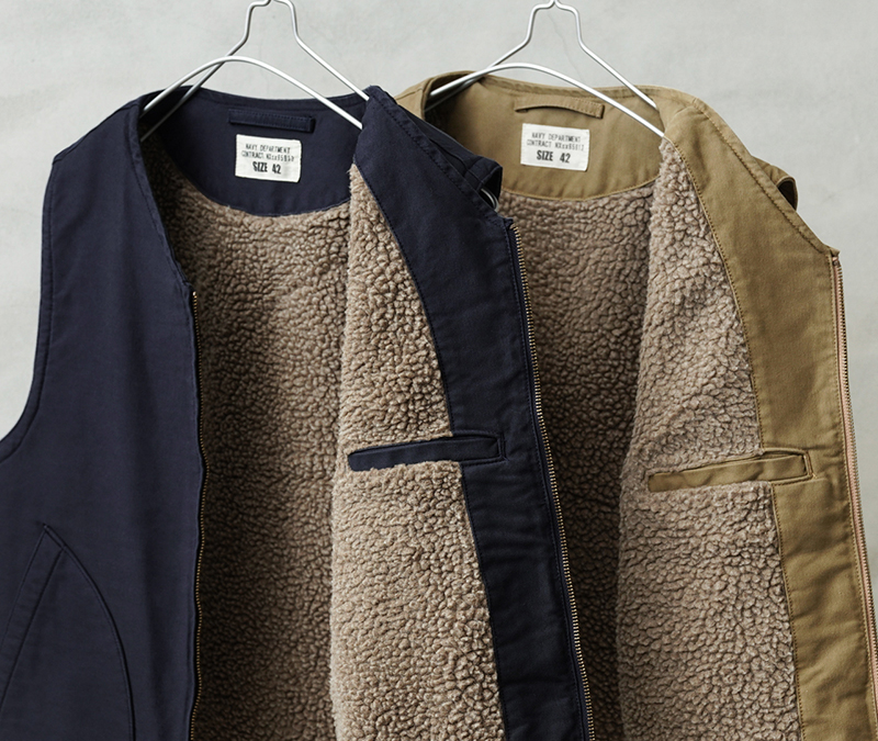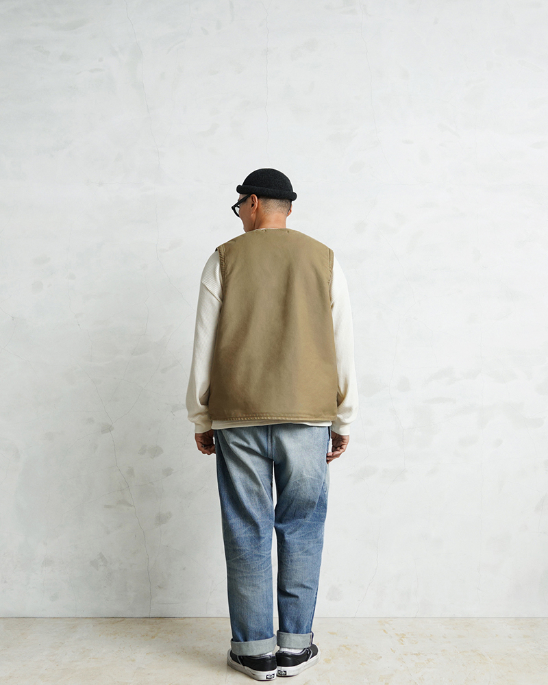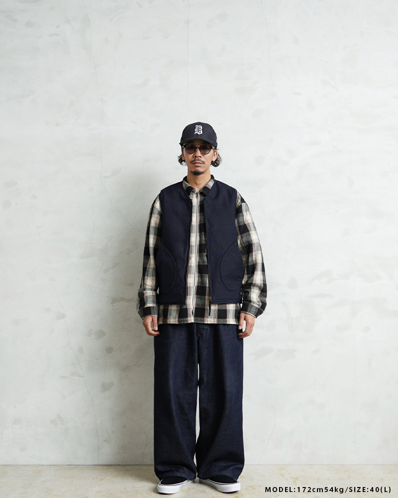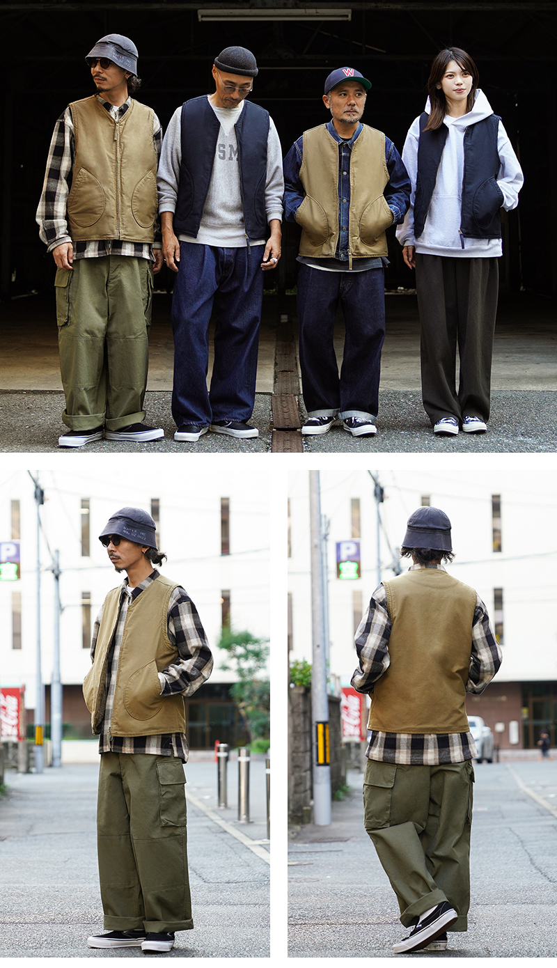 | 商品説明 | WAIPER.inc 米海軍 U.S.NAVY N-1 デッキベスト のご紹介です。 制式名称:N-1 DECK JACKET 品番:WP29 米海軍(U.S.NAVY)が生んだ傑作として名高い「N-1デッキジャケット」。 同じ素材を用いた40年代に存在したベストを製作しました。 デッキベストという名が示すとおり、アメリカ海軍の甲板作業用として採用されたミリタリーウェア。 N-1と同様に冬の海上における猛烈な寒さに耐えられるようにデザインされた堅牢な素材はタフな生地と防寒性を両立します。 表地にはジャングルクロスと呼ばれる高密度に織られたコットンファブリックを採用。着こむほどに体に馴染む風合いが魅力です。 防寒性に優れたライニングはアルパカを数年着込んだような、ボアフリースを使用。肌触りもよく、ウール特有のチクチク感が無く直接肌に触れても気持ちの良い着心地となっています。 アウターを着るにはまだ早いが寒さが気になるときに重宝するベストはネルシャツやサーマルの上からシンプルに合わせるもよし、レザーや薄手のジャケットなどに保温性を加えるレイヤードもおすすめです。 デニムやチノパンなど定番のボトムスとも相性抜群なので、普段の着こなしに羽織るだけでサマになるベストとなっています。 |