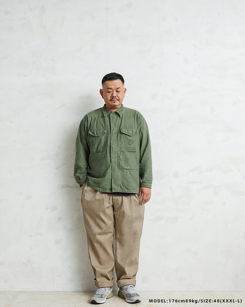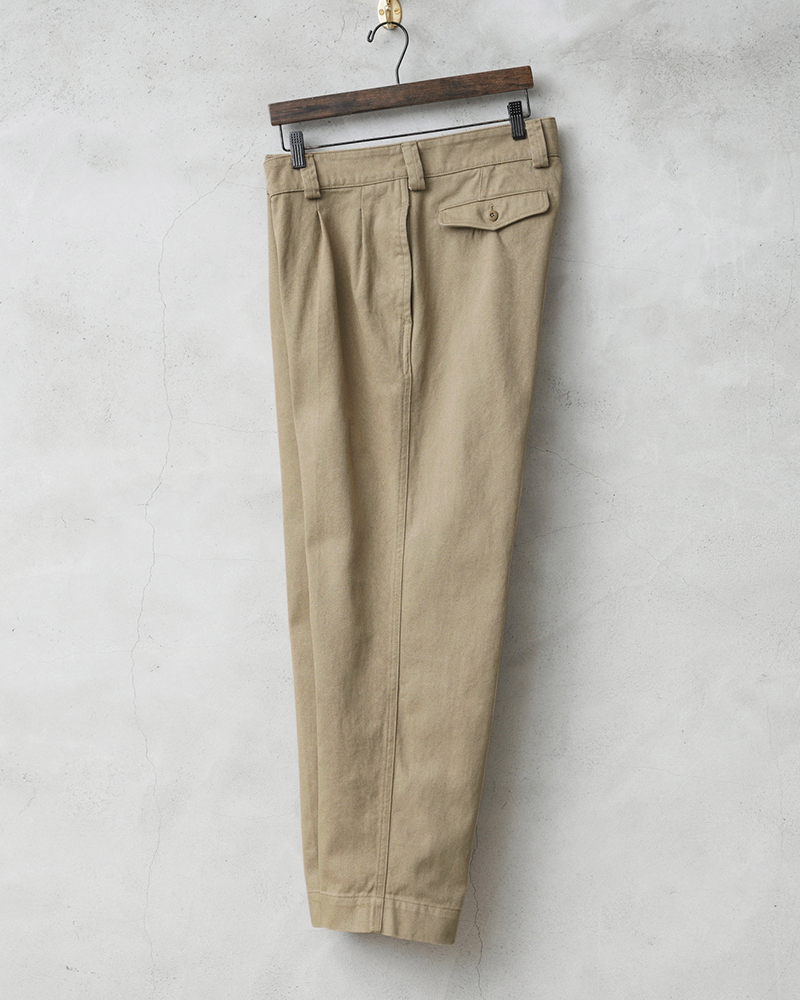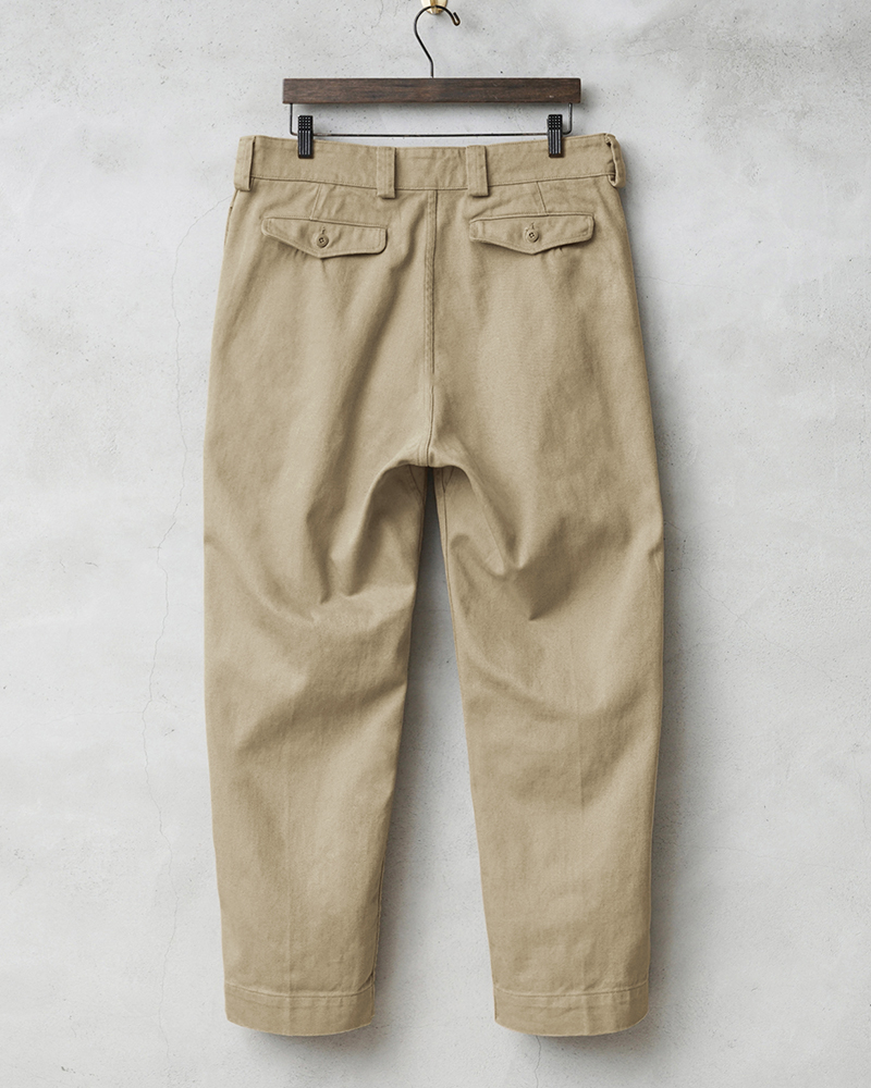| 商品説明 | WAIPER.inc フランス軍 1950~60年代 M-52 ヴィンテージ ツータック チノトラウザー WAIPER.inc のご紹介です。 品名:FRENCH ARMY M-52 CHINO TROUSERS - TWO TUCK MODEL 品番:WP69 1950~1960年代にかけてフランス軍に採用されていたM-52チノトラウザー。近年では放出は皆無に等しく、希少価値の高い名作デザインを、畝が太く風合いの良いコットンツイルで仕上げた渾身のリプロダクトアイテムです。 サイドポケット、フラップ付きのバックポケットを配した、コーデの定番として活躍するシンプルな4ポケデザイン。凹凸感があり武骨さも感じられるツイル生地はガンガン洗って、ガンガン履きつぶして、出てくるヤレ感やシワ感を楽しんでいただけます。 ボタンフライの少し深めの股上にウエストから裾にかけてテーパードした人気の理由でもある絶妙なシルエット。スニーカー、ブーツ、ローファーなど様々なシューズと相性がよく、ロールアップスタイルも作りやすいので、1本あるだけで着こなしの幅も広がります 長く愛用していただけるWAIPER.incイチオシの一本です。 |