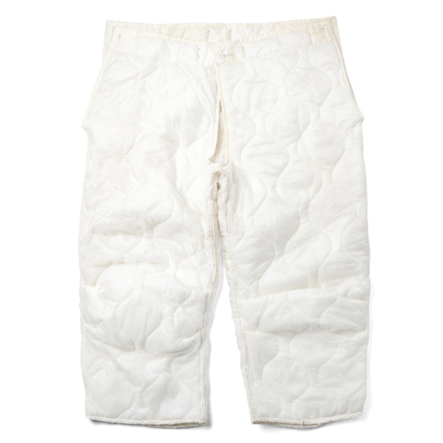 M-65フィールドパンツに装着するためのキルティング・ライナーです。このライナーを装着する事で、M-65の防寒衣料としての100%の性能を発揮します。 着用しているだけでじんわりと暖かく、まるで発熱しているかの様な感覚です。M-65パンツのウエスト部分にあるボタンに取り付けて組み合わせる様に設計されていますが、 ほかのパンツでもレイヤリングで重ね履きすることで防寒機能を高めることができます。
