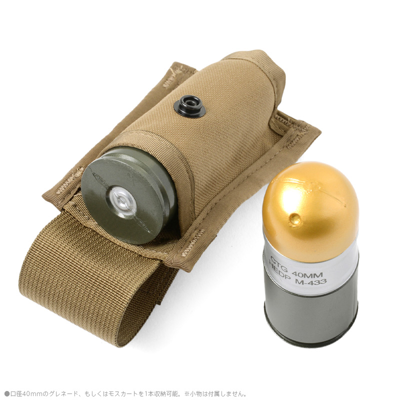 40mm口径のグレネード弾、もしくはエアソフトガン用のモスカートを1つ収納することができます。