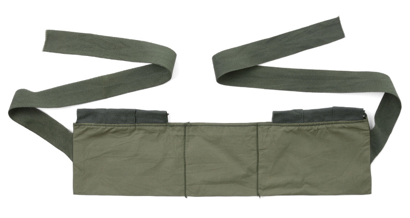 実物 米軍 G.I. コットンバンダリアポーチ USEDのご紹介です。米軍より複数のマガジンをタスキ掛けする為の弾薬帯であるバンダリアが入荷しました。消耗品である弾薬を最小限の荷物で携行する為に、軽量で非常にシンプルな作りとなっています。カットオフされたコットンテープのフラップはドットボタンのみで留める単純な仕様です。ベルト部分も体に巻き付けるためのバックルなどはなく、帯を縛って固定するような作りです。自由度の高いアイテムは使い方次第で様々な機会にご使用いただけます。