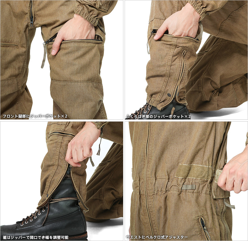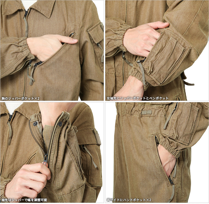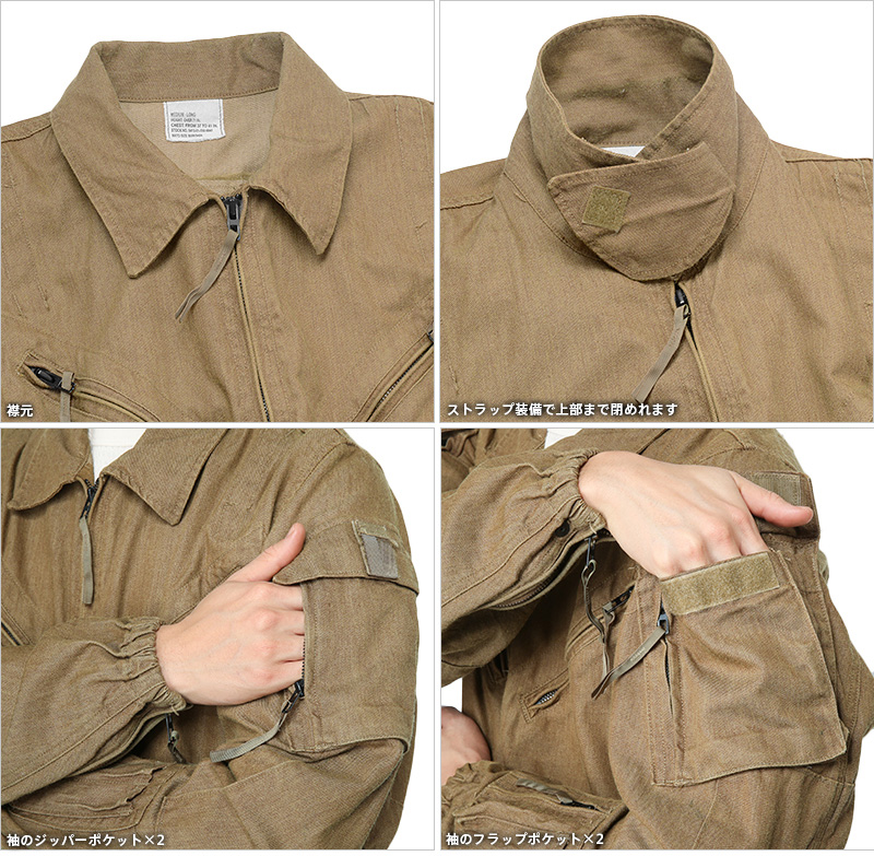 米軍放出の戦闘車両乗組員用のカバーオールです。アラミド繊維が使用されており、可燃性が低く、優れた強度と耐熱性を持ち合わせています。いたるところにジップポケットが配置され、収納性能は抜群。戦闘車両乗組員用をサポートするための様々な機能が詰め込まれた一着です。落ち着いたCOYOTEカラーに、野暮ったくなりすぎないシルエットは、普段使いにも最適。バイクの運転や作業着としてもオススメなミリタリーの機能性を感じられるアイテムです。
