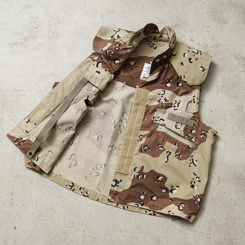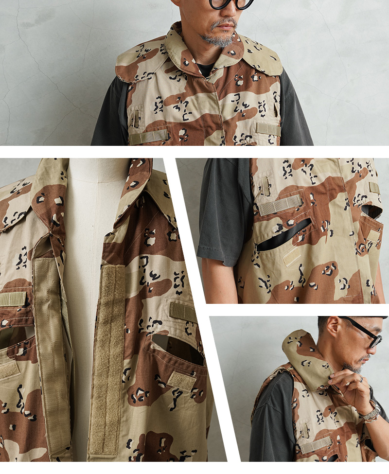 | 商品説明 | 実物 新品 デッドストック 米軍 PASGT ボディアーマーベストカバー 6Cデザート(チョコチップ)カモのご紹介です。 制式名称:COVER,PASGT VEST,CAMOUFLAGE PATTERN:DESERT. 米軍で採用されていたボディアーマー、PASGTベストに被せて使用するカバーです。本来はウッドランドカモのPASGTベストに、砂漠での迷彩効果を付与するために開発されました。 PASGTとは「Personnel Armor System for Ground Troops」の略称で、「地上部隊向け個人防護システム」を意味しています。82年ごろに採用された本システムは、拳銃弾と砲弾の破片を阻止する事が可能なベストおよびヘルメットで構成されており、ベストに関しては米軍だけでなく航空自衛隊でも採用されていました。 初期のベストカバーではこの6Cデザート(チョコチップ)カモが採用されていましたが、米カリフォルニア州モハーヴェ砂漠の色味をモデルに開発されていたために中東の砂漠には馴染まず、その後は3カラーデザートカモのタイプに変更されていきました。 素材には丈夫なコットン・ナイロンの混紡素材が使用。ミリタリーならではの実用性と無骨さがコーデのポイントとして活躍するオススメアイテムです! |