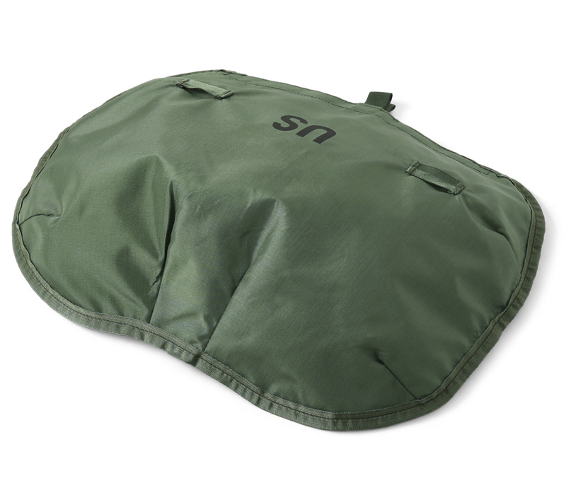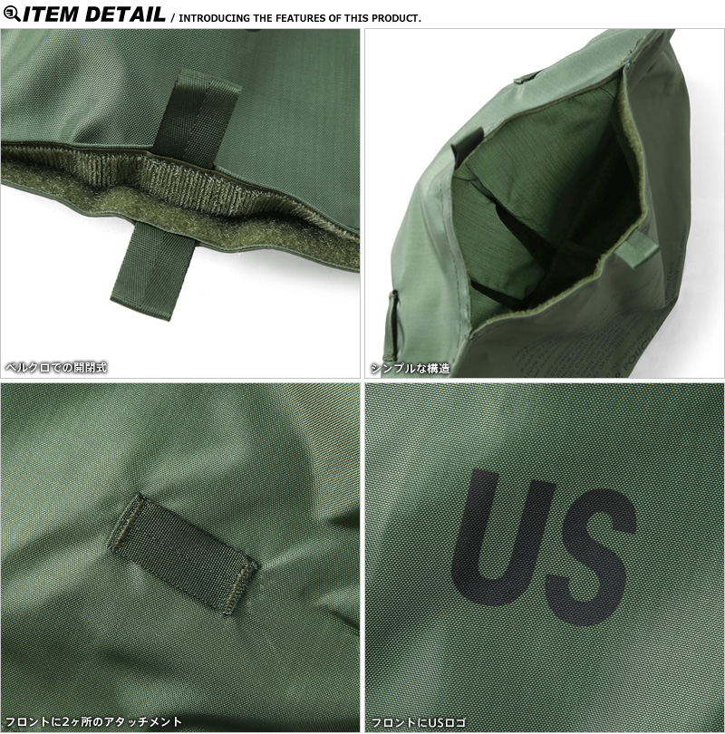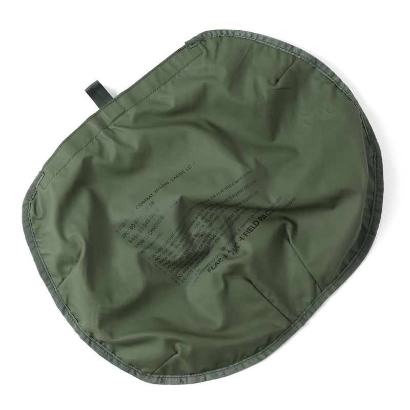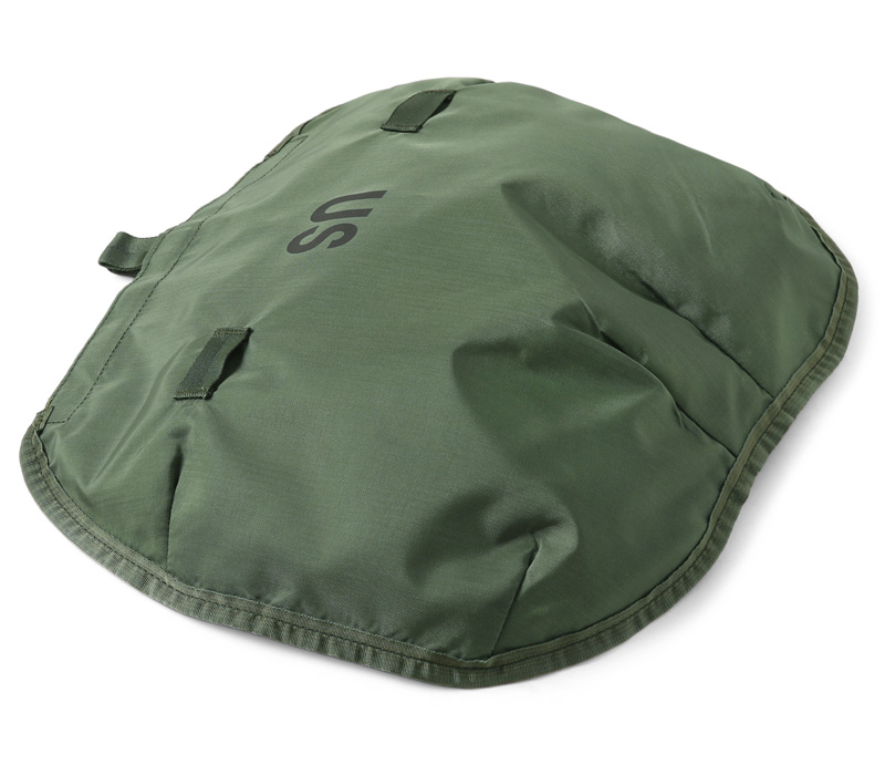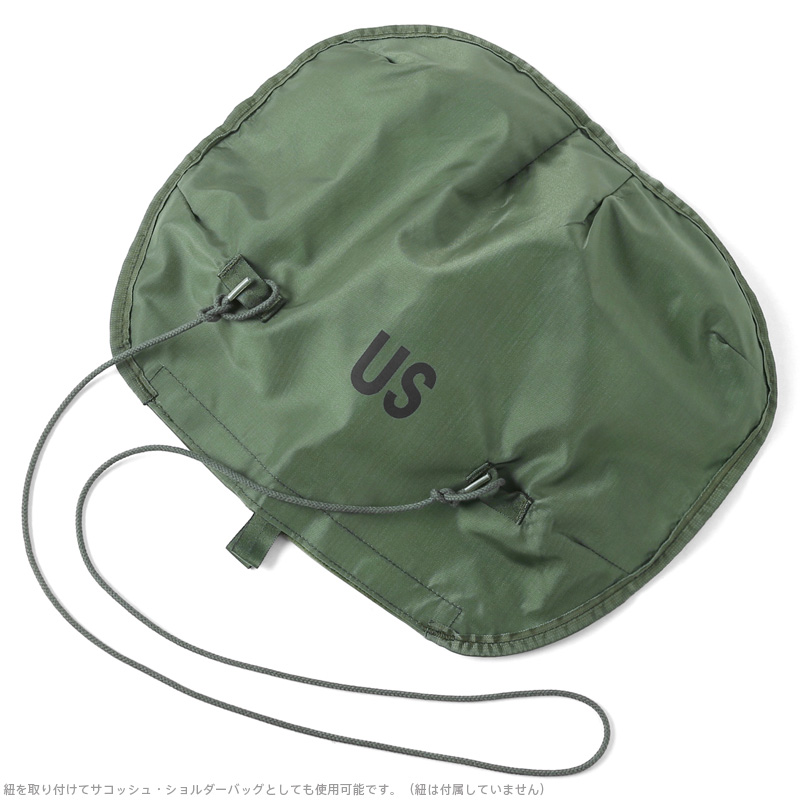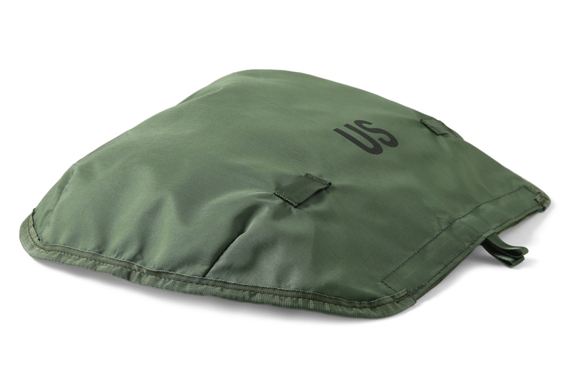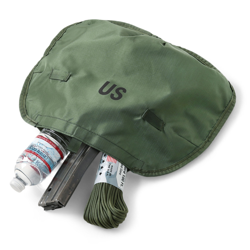 本体裏面も防水ラバーコーティングになっており、印字されているコントラクトやフロントのUSロゴが米軍らしいアイテムです。コンパクトに収納でき、持ち運びにも便利でキャンプやアウトドアの際の小物入れとしても便利です。