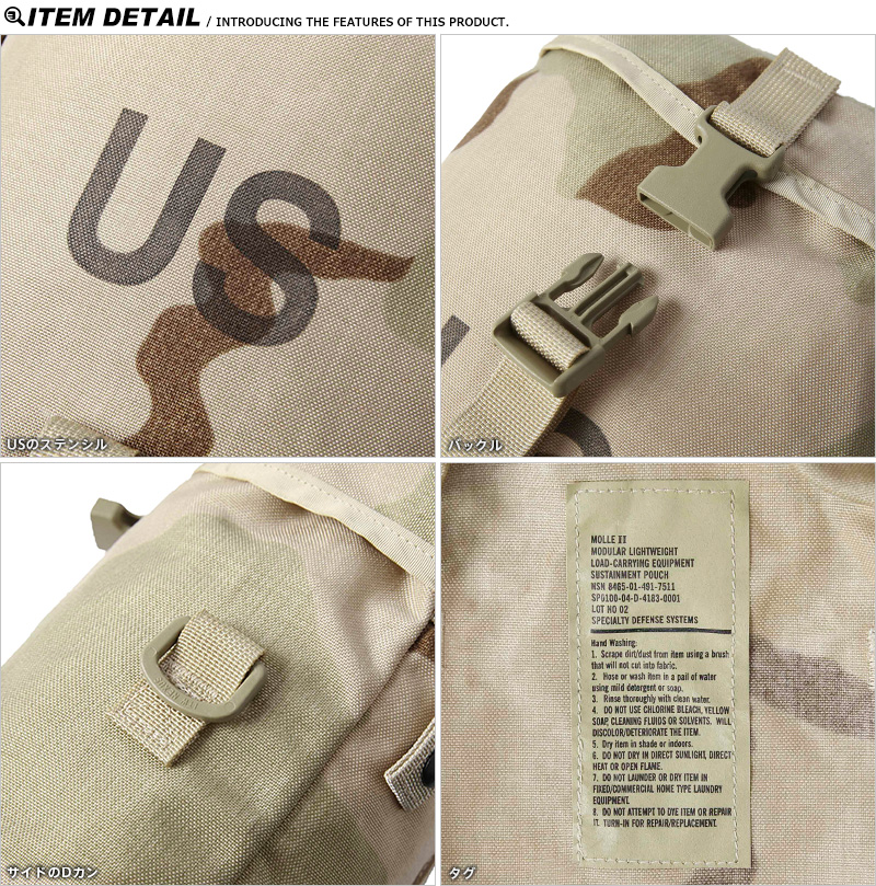 実物 新品 米軍 MOLLE II SUSTAINMENT ポーチ 3Cデザートのご紹介です。米軍で使用されているMOLLE II パトロールパックを拡張する為のバッグが本来の仕様用途ですが、多機能ポーチとしてベルトに装着したり、ユーティリティストラップを取り付けてショルダーバッグとして使用したり様々な使い方が可能です。近年、放出の少ない貴重な未使用品での入荷となります。