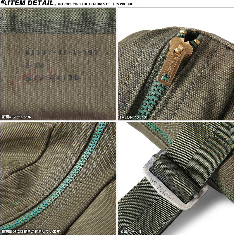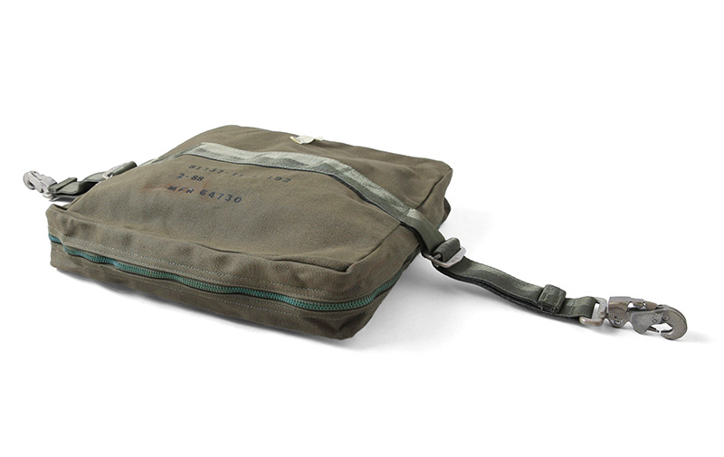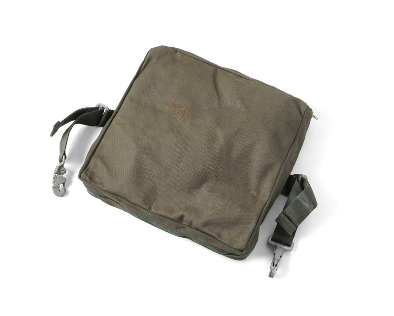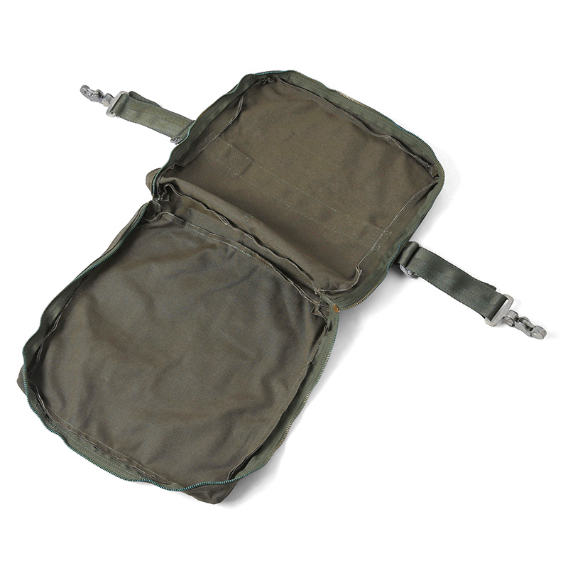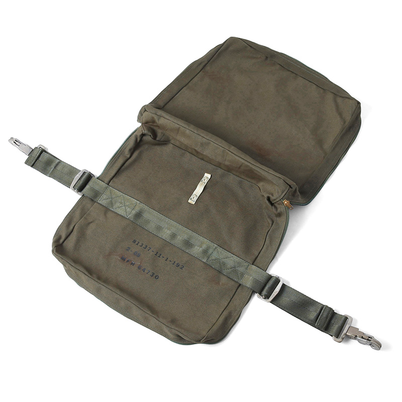 実物 新品 米軍 INDIVISUAL AIRCRAFT サバイバルキットケースのご紹介です。本来は戦闘機に備え付けられていたサバイバルキットを収納するバッグで、キャンバス製の素材を使用したポーチはサバイバルキットが収納できるようにファスナーを広げると開口部が広くとられ全開になる形状です。薄型の形状はクラッチバッグやポーチとしてもご使用いただけそうなデザインとなっています。TALON製のファスナーや堅牢なクリップなどミリタリーらしいディテールは男心をくすぐる無骨な雰囲気となっています。アイデア次第で様々な使い方が可能なバッグとなっています。
