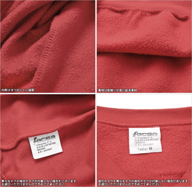 程よく厚手のスウェット生地で保温性、吸湿性に優れ、裏地は肌触りの良い起毛素材です。