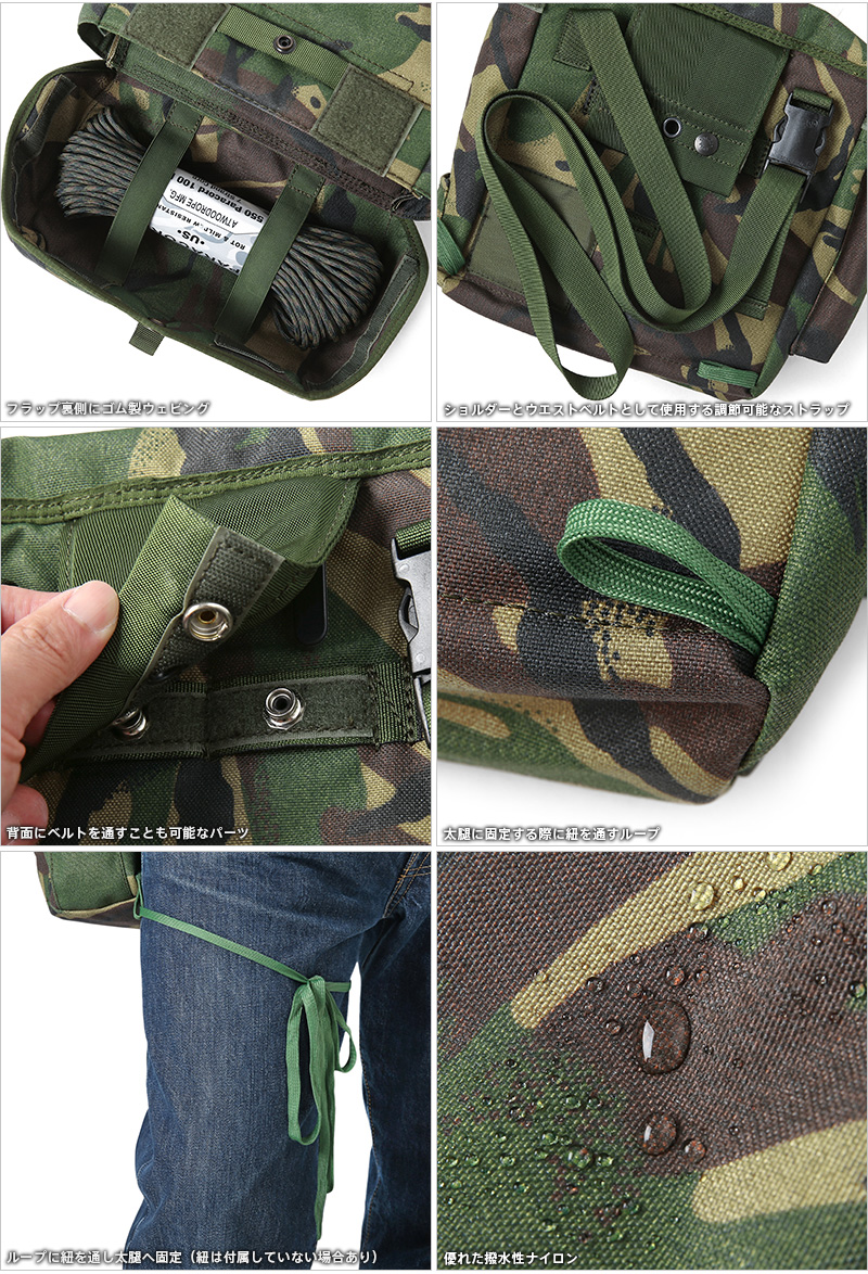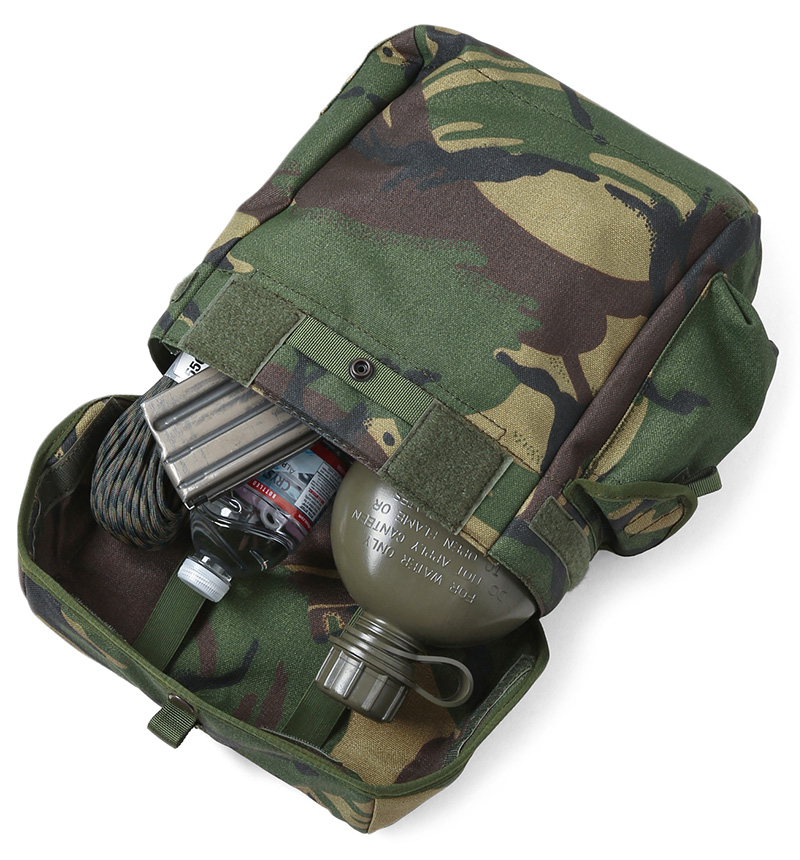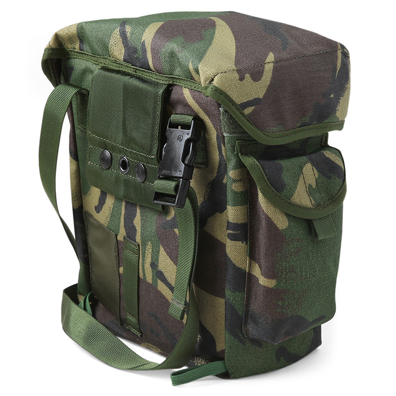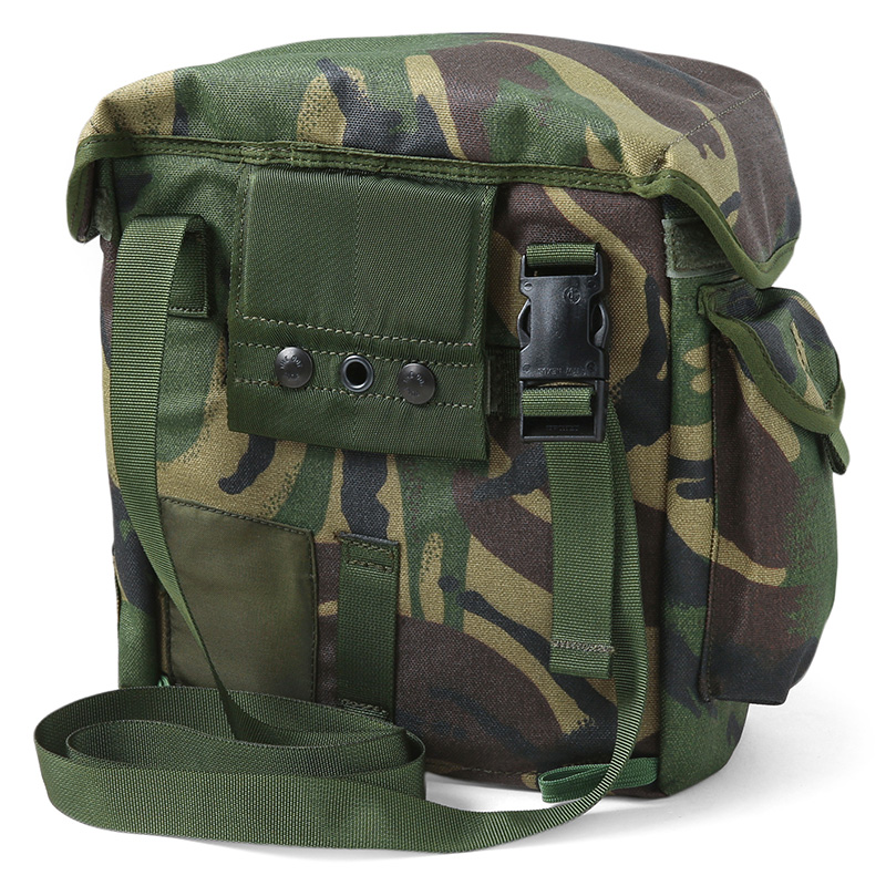DPMカモフラージュ柄は、イギリス軍や世界中の多くの軍隊、旧イギリス植民地で使用される迷彩パターンを使用したガスマスクバッグです。