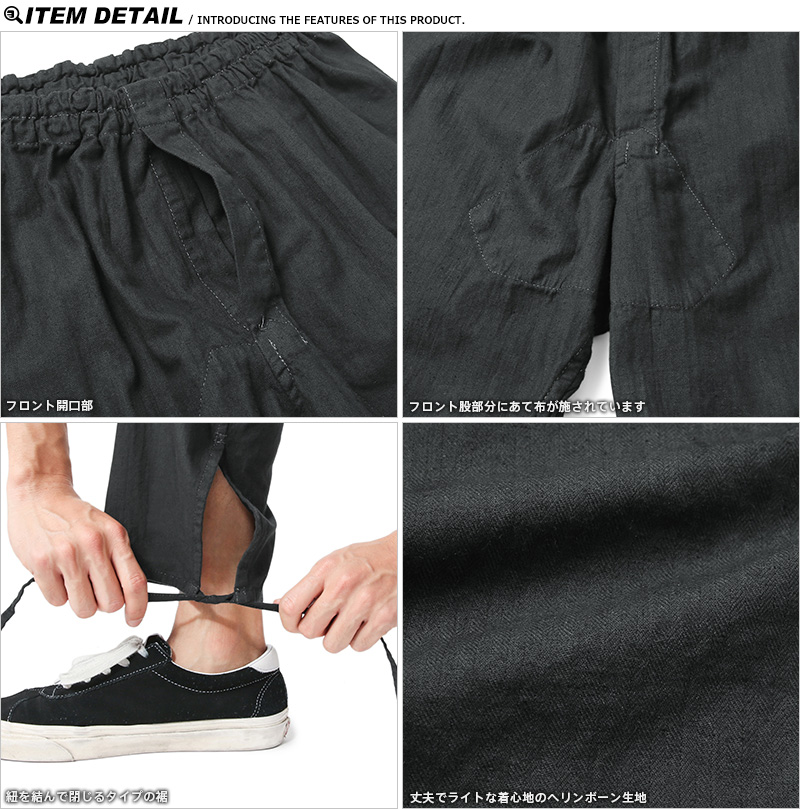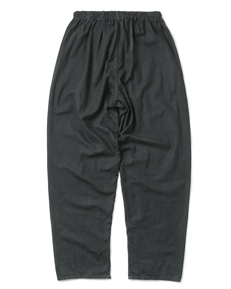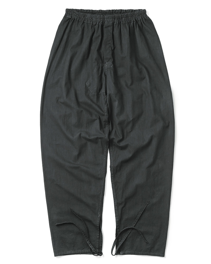 ものすごくシンプルなアイテムですが、裾にかけてテーパードしたキレイなシルエットがポイント。裾は紐を結んで閉じるタイプで、脱ぎ履きがしやすい仕様です。