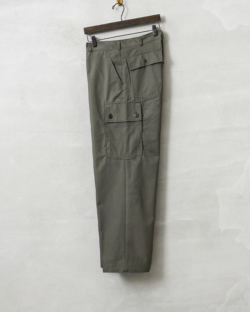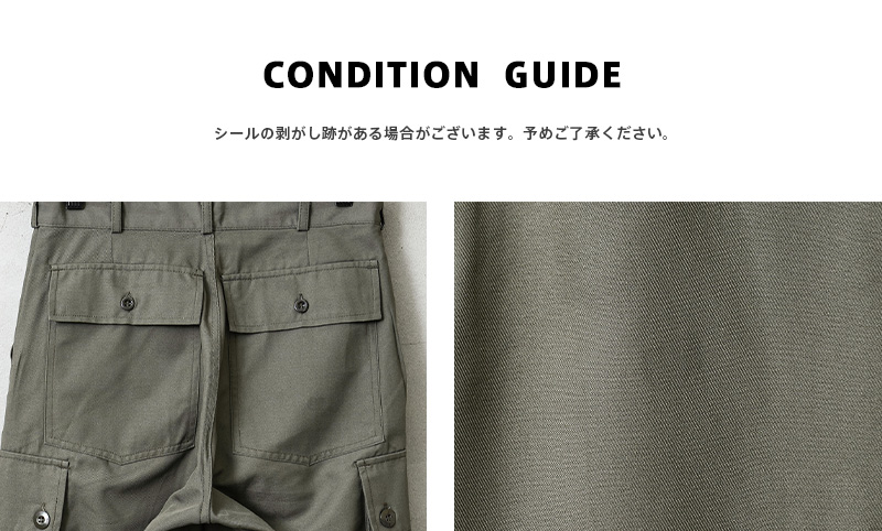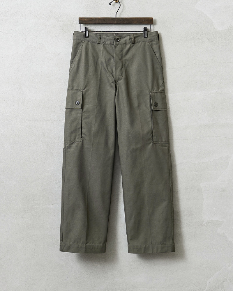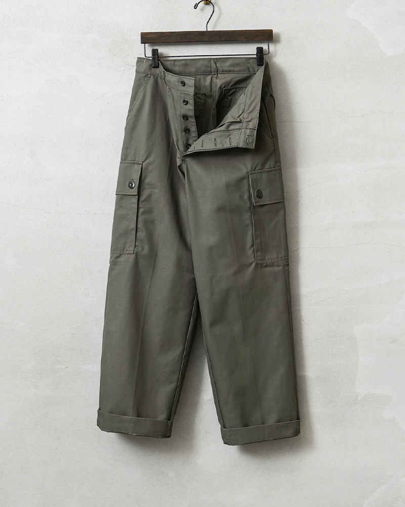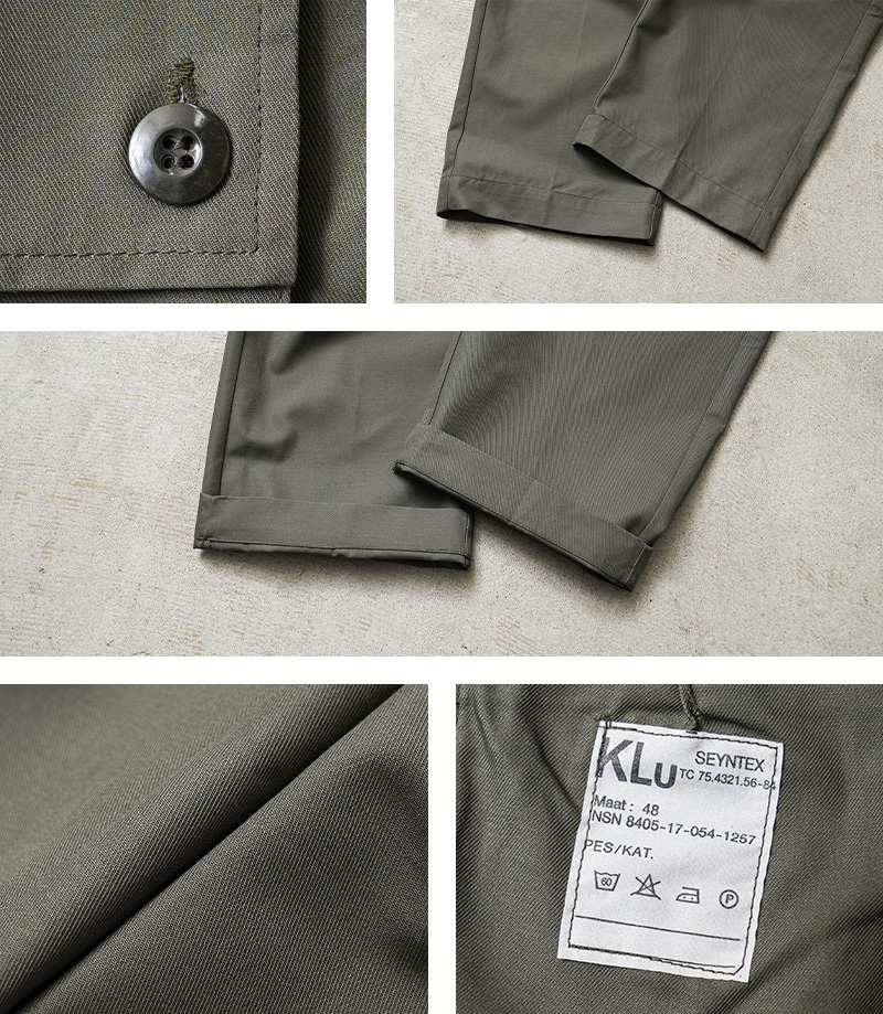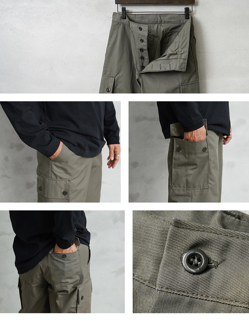 | 商品説明 | 実物 新品 デッドストック オランダ軍 AIR FORCE カーゴパンツのご紹介です。 オランダ空軍(DUTCH AIR FORCE)より希少なカーゴパンツが入荷しました。 80年代前半に採用されたグレーとオリーブの中間色ぐらいの色合いが雰囲気抜群のカーゴパンツです。シンプルなデザインが特徴で、実用性重視の一本。フロントポケットに加え、両サイドにはカーゴポケット、バックポケットも配置し、機能面にも優れています。 素材は耐久性に優れたポリコットン混紡素材が使用されており、タフな使用にも対応。実戦を想定した作り込みで、動きやすさと耐久性を兼ね備えています。 1980年代頃のヴィンテージミリタリーとしての価値も高いアイテムです。以前はまとまった数が入荷していましたが、今では少量でしか放出のなくなったアイテムの1つです。 クセのないシルエットは、ミリタリースタイルはもちろん、現代のカジュアルコーデにも取り入れやすく、デイリーユースにも適した一本です。 |