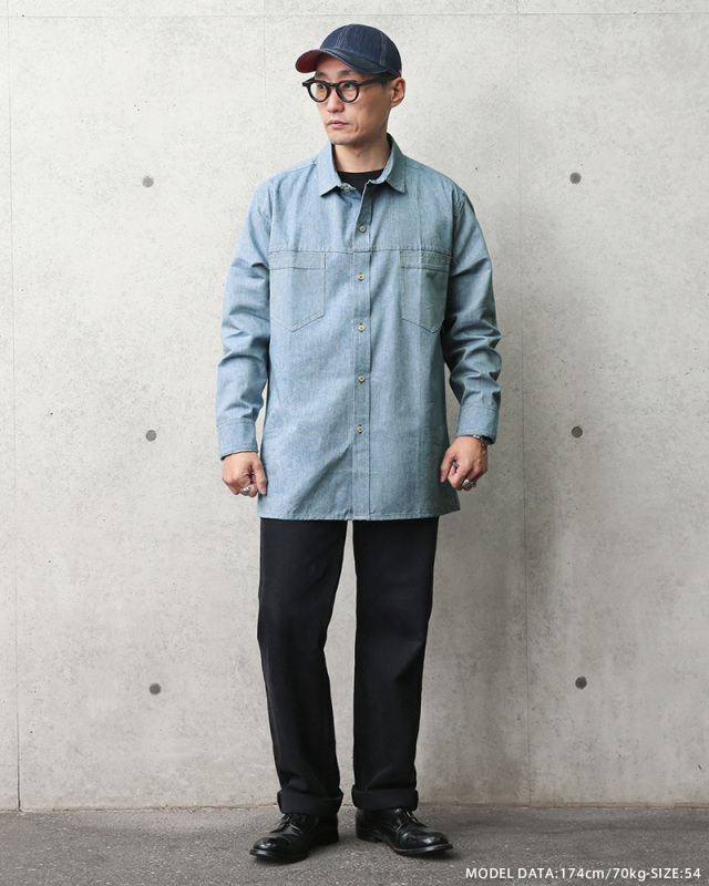 ライトな着心地で爽やかな印象のシャンブレー生地はドライな風合いがあります。2ポケットのボックスシルエットなど、プリズナーシャツらしくシンプルなデザインになっています。黄色のステッチがアクセント◎ すっきりとしたシルエットのベーシックなデザインなので、ジーンズやチノパン、カーゴパンツなどボトムを選ばず合わせられるマルチなアイテムです。 1枚ではもちろんの事、アウターのインナーにも使えるユーティリティーウェアで 何枚あっても損はしない定番アイテムになりそうです。 |