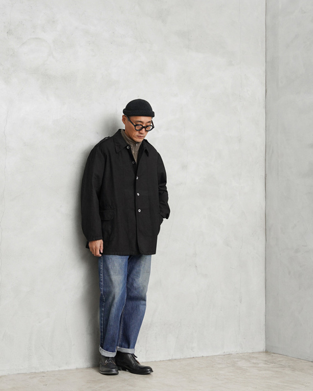 | 商品説明 | 実物 USED スウェーデン軍 M-39 ユーティリティー ワークジャケット BLACK染めのご紹介です。 スウェーデン軍特有のグリーンカラーのユーティリティーワークジャケットが誕生する以前に採用されていた非常に希少なアイテムを染め職人に丁寧にBLACK染めしていただきました。BLACKにする事でかなり良い雰囲気になり、着込むことでさらに風合いの増す1枚です。 Overdragsrock(オーヴァードラグスロック)という独自の名称で呼ばれるユーティリティージャケットで、仕様や状態も様々でまさに1点物と言える雰囲気を醸し出すヴィンテージアイテムです。 シャツジャケット感覚で着用できる生地感のコットンツイル素材でフロントのサイドにはフラップポケットが備わっています。フロントはボタンで開閉でき、メインに使用されているメタルボタンが年代の古さを感じさせます。 ウール生地の軍服が主流だった時代に作業服として生まれ、時に簡易の夏季用戦闘服としても利用されました。 味のある使用感、ワークジャケットらしいシンプルなデザインと綺麗なシルエットが魅力の1枚です。 羽織るだけでOKなコーディネートを選ばずに着用していただける汎用性が高いアイテムです。 |