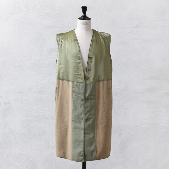 | 商品説明 | 実物 新品 デッドストック フランス軍 オフィサー トレンチコート用 ウール ライナー ベストのご紹介です。 フランス軍で1960~1970年代に使用されていたヴィンテージのウールライナーベストが入荷しました。 オフィサー トレンチコート用のライナーとして製造されたアイテムですが、ライナーにしておくには勿体ないセンスの良いデザインのベストです。 全体にウールが使用された膝丈のベストで、前後の肩から胸部分にかけては、ウールの上から滑らかで光沢感のあるサテン生地が使用され、ライナーとして使用する際には袖通りの良い裏地として活躍します。 サイドには貫通ポケット付きで、その内側にはインナーポケットが付属していますので、インナーポケットのある方を外側で着用すると雰囲気を変えて着こなせます。 普段の着こなしの幅を広げてくれる、性別問わず着ていただきたいベストです。 |