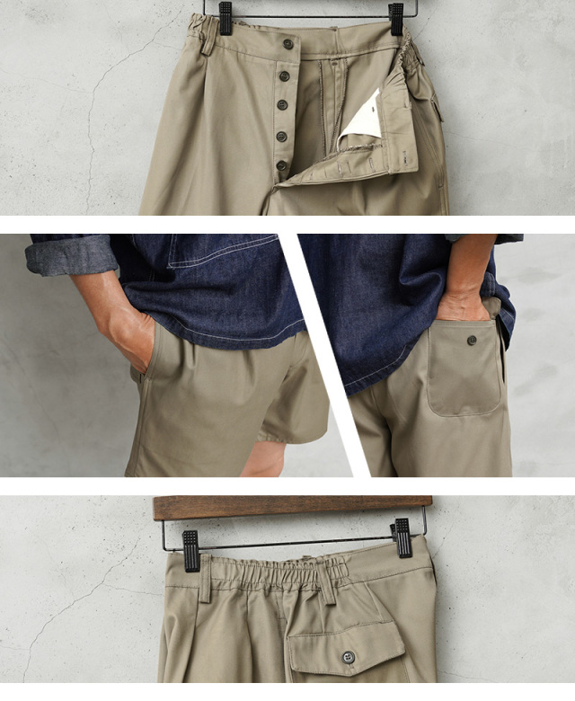 | 商品説明 | 実物 新品 デッドストック イタリア軍 90’s E.I. チノショートパンツ ウエストゴムのご紹介です。 イタリア軍にて採用されていたチノショートパンツが入荷しました。 1990年代に多く製造されていたウエストゴム入りのボタンフライタイプで、コットン100%のコットンツイルを使用。ロングをリメイクした物ではなく、オリジナルのショートパンツです! 巷で見かける機会の少ないイタリアのミリタリー物で、頑丈なチノ生地、綺麗なシルエットの膝上丈、武骨さを残しつつもスタイリッシュに穿いて頂ける逸品です。 フロントは2タックの入った適度なゆとりで洗練されたシルエットです。そして、サイドにはスラッシュポケット、バックにボタン留めのフラップポケットが付いています。サラッとした程良い厚みの生地なので、夏でも快適に穿く事が出来ます。 ミリタリーパンツの定番カラーとしてだけではなく、普段使いに非常に重宝して頂けるカーキカラーで、綺麗なシルエット、穿き込むほどに風合いの増すチノ生地のミリタリーチノショーツは、スタイリングに困った際に使える非常に万能な一本です。 |