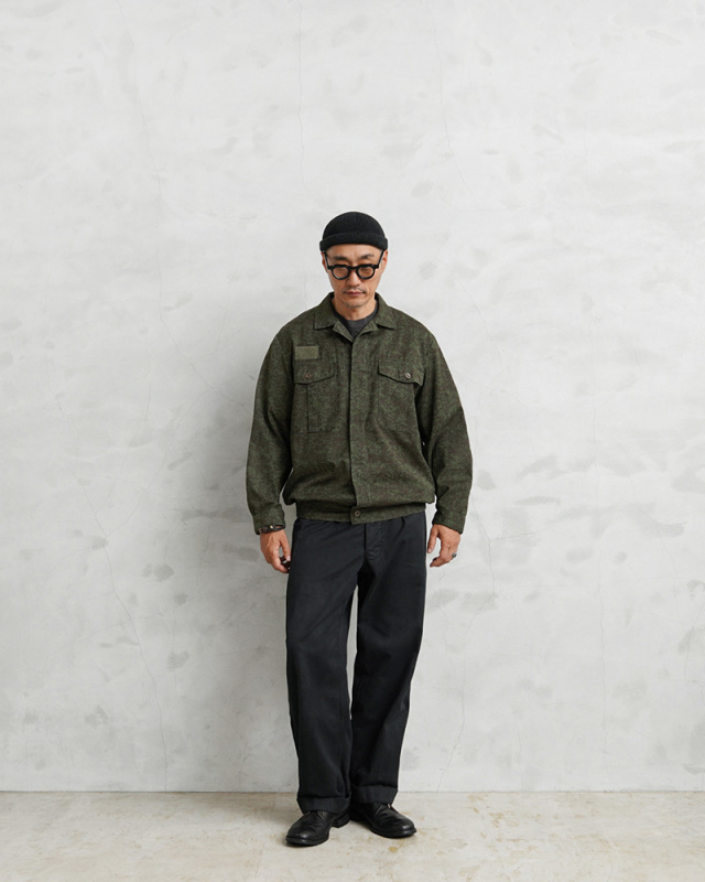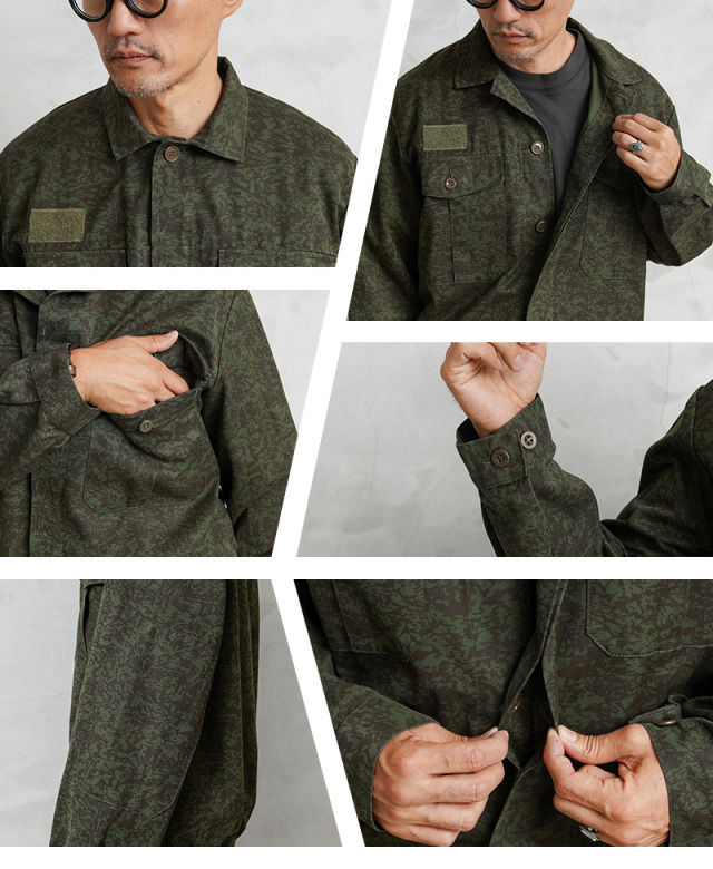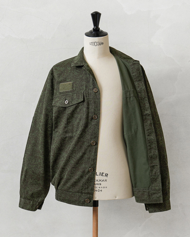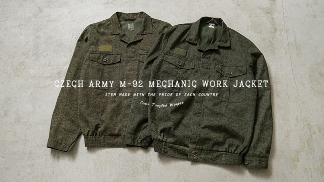 | 商品説明 | 実物 USED チェコ軍 M-92 MECHANIC(メカニック)ワークジャケットのご紹介です。 ペイントされたようなVz92カモフラージュパターンが目を引くデザインのジャケットで、チェコ軍の整備士などのメカニックが日常的に使用するグリース、オイルなどの長期的な汚れをカモフラージュする目的のために特別に設計されたワークジャケットです。 肘部分は同素材のエルボーパッチで補強されており、ウエストは伸縮性のあるゴムシャーリングでフィットして風の侵入を防ぎます。両胸には中央にマチの付いたフラップポケットが備わっています。右胸にはベルクロがアクセントになっており、ワッペンなどを取付可能です。袖口はボタンで調節可能です。 比翼仕立てのデザインの頑丈なワークウェアであり、落ち着きのあるダークグリーンにダークブラウン系カラーは普段着としても使える珍しいカモ柄のミリタリーワークジャケットです。 |