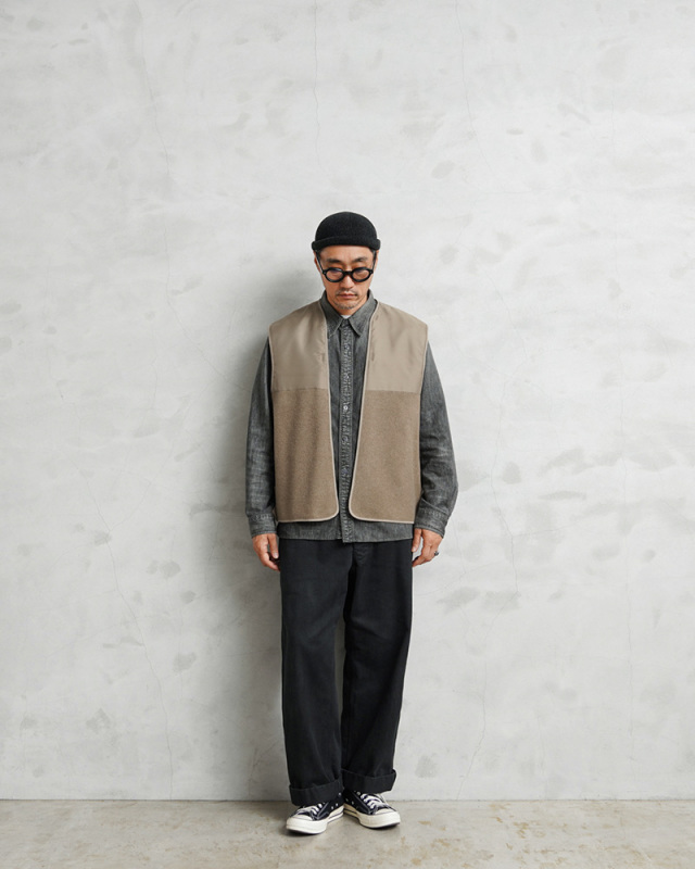 | 商品説明 | 実物 新品 デッドストック オランダ軍 ヨーク切り替え ウールライナー ベスト ベージュのご紹介です。 オランダ軍で使用されていたウールライナーベストが入荷しました。トーンを抑えたベージュカラーが特徴のウールライナーベストで、ジャケットなどの内側に取り付けて使用されていましたが、シャツやスウェットなどの様々なトップスにレイヤードするだけでレベルの高い着こなしができる1枚です。 ヨーク切り替えのデザインになっていますので、この部分を表にして着用していただくと単体で着用するベストとして作られたような完成された雰囲気。ラベルの付属する部分を表にしても着れますので、リバーシブルでもお使いいただけます。 ウールの上から適度な光沢のポリアミド(ナイロン)のヨーク切り替えがされていますので全体的に保温性に優れ、ウールのストレスも感じませんし、縁の部分には丁寧にパイピングが施されています。 様々なジャケットの内側に着用する事で防寒性を高めるライナーとしても使えて、いつもの着こなしをアップデートしてくれる性別問わずに着れるウールライナーベストです。 |