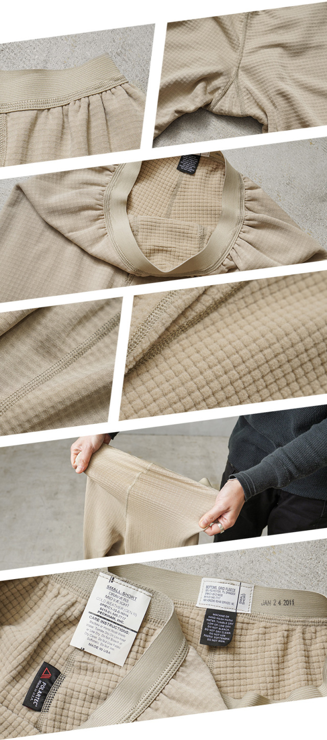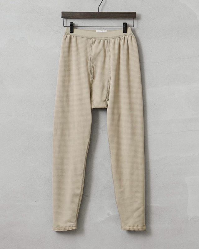 | 商品説明 | 実物 新品 デッドストック 米軍 ECWCS GEN3 MID WEIGHTフリース アンダーパンツのご紹介です。 制式名称:DRAWERS MID WEIGHT COLD WEATHR(GEN III) 米軍実物放出品でレイヤリングをする上で重要で基本となるECWCS GEN3 MID WEIGHTフリース ドロワーズ。 厚手の肌着として、温度の低い季節や環境でのインナーとして効果的に活躍してくれます。 グリッド構造による高い通気性で汗ムレを防ぎ、繊維の微起毛が空気の断熱層をつくり、保温性に優れた素材を採用。4WAYストレッチで激しい動きにも追従します。 ウエストは伸縮性に優れたゴムで柔軟にフィットし、シンプルなデザインとカラーはどんなボトムスとも相性抜群。ストレスフリーな履き心地で、秋冬の防寒対策としてはもちろん、温かい季節でも登山やキャンプなどのアウトドアに最適です。 普段着にもデイリーに活躍する他、家でのリラックスウェアとしてもオススメのアンダーウェアです。 |
