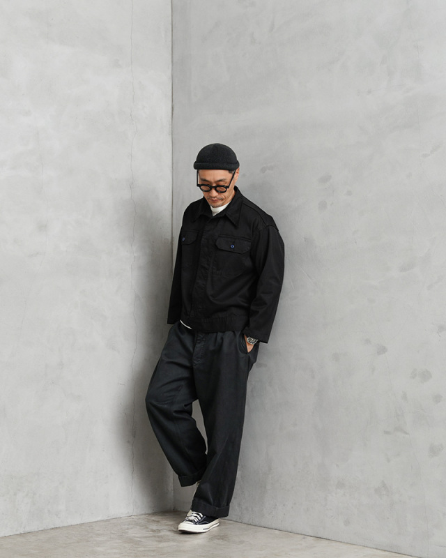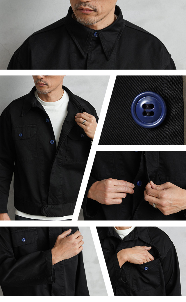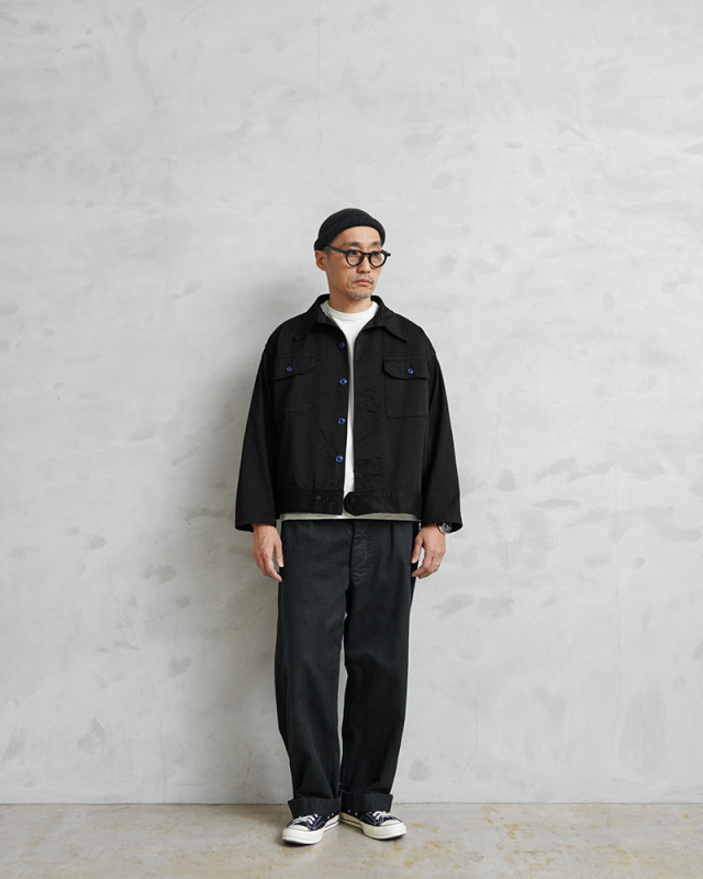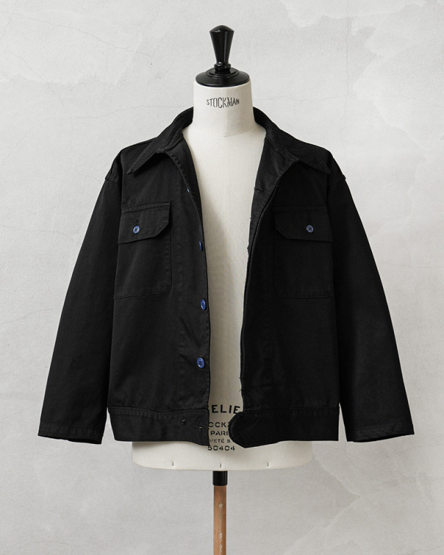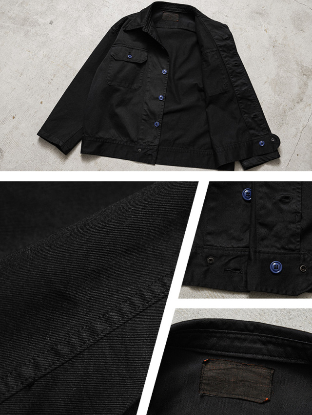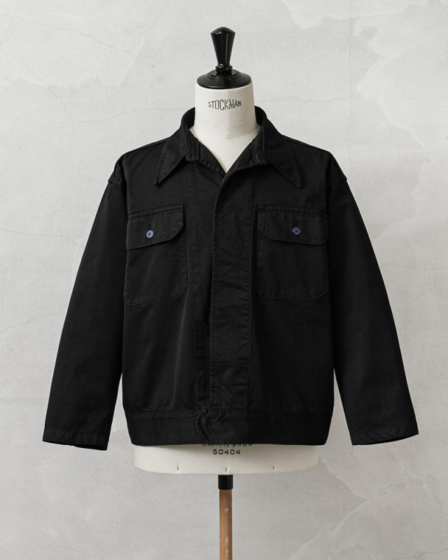 | 商品説明 | 実物 新品 デッドストック 米軍 1960~80年代 メディカルジャケット BLACK染め のご紹介です。 制式名称:JACKET,CONVALESCENT,WINTER 1960~80年代に米軍で採用されたメディカル系ジャケットで、回復期の患者が着用するためのアイテム。 チノクロスの様に打ち込んだ、かなりしっかりと織り上げられた右綾のコットンツイル生地で、非常に丈夫な作りになっています。 元々はWINTERという記載があり、冬用のジャケットではありますが、春秋などにも活躍する丈夫で程よい厚さの生地感。アームホールやサイドの縫製にも巻き縫いが用いられており、使い込んでいくことでパッカリングが出て経年変化を楽しむことができます。 胸元にフラップポケットが2箇所、ロングポイントカラーと呼ばれる襟の先端が少し長めのクラシカルなデザイン。トラッカージャケットのようなボックスシルエットに、シックなブラック。ボタンのNAVYカラーがポイントになっています。 ヴィンテージミリタリージャケットの雰囲気はそのままに、新鮮さもが加わった一着です。 |