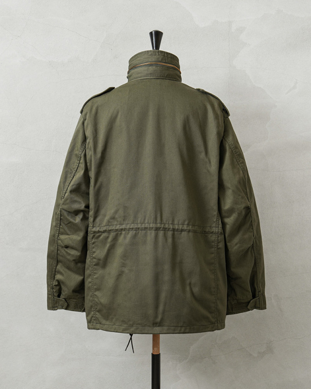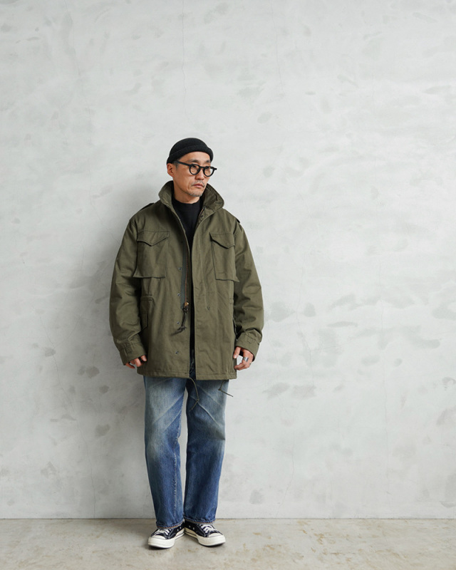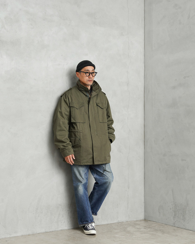 | 商品説明 | CONCORD コンコルド ~90’s MADE IN USA M-65 フィールドジャケットのご紹介です。 CONCORD INDUSTRIES CORP(コンコルド インダストリーズ コープ)が民間用のM-65 フィールドジャケットとして製作したアイテムが入荷しました。現在では製造されていないMADE IN USAのデッドストックです! CONCORDは米軍への納入実績のあるALPHA INDUSTRIES(アルファ インダストリーズ)がヨーロッパ市場に向けて製造していたブランドになりますが、素材や生産国もアメリカ製になります。 1970年頃からCONCORDのブランドで製造が開始されており、年代の古さを感じさせるブラスジップが使用されているのを見ると、90年代以前に製造された可能性も高いM-65ジャケットです。 M-65フィールドジャケットは1965年に米軍の野戦服として採用、朝鮮戦争で使用されたM-51シリーズの後継として開発され、BDUへのリプレースが始まる1981年初頭まで第一線で活躍しました。60年代に採用されたアイテムながら、現在まで幅広く着られるジャケットとして完成されたデザインと言えます。 暖かで着心地がよい総裏仕立てで、簡易的なフードが内蔵されたスタンドカラー、背中や肩周りの動きをスムーズにするアクションプリーツ、そしてこのジャケットの特徴でもあるフロントに配置された4つの大型ポケット。肩にエポレットが配置され、OLIVE DRABの落ち着いた色合いに、アクセントにもなるブラスジップ仕様の3rdモデルタイプになります。 ラベルに“Made to US Goverment Specs”という記載のあるように米国政府の仕様に沿って作られたミルスペックと呼べるしっかりとした作りのフィールドジャケットです。 ジッパーには「IDEAL」が使用されたヴィンテージ感漂うハイスペックな作りで、今となっては希少になってきた民間用のアメリカ製M-65ジャケットのデッドストックです! MADE IN USA |