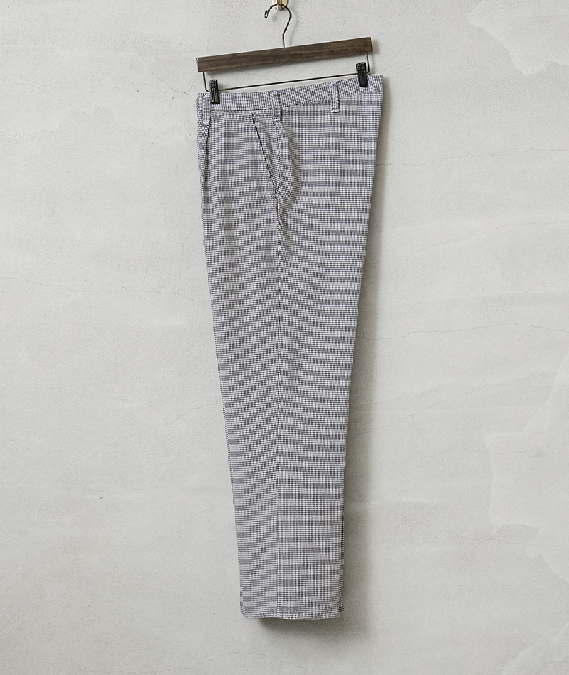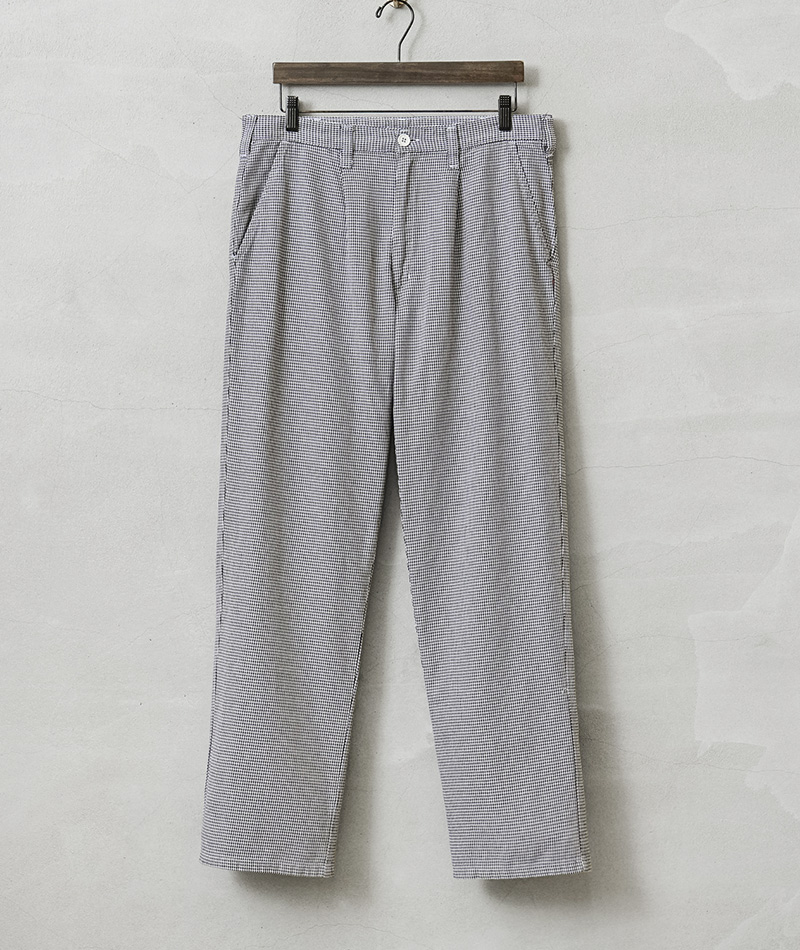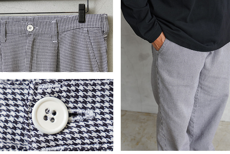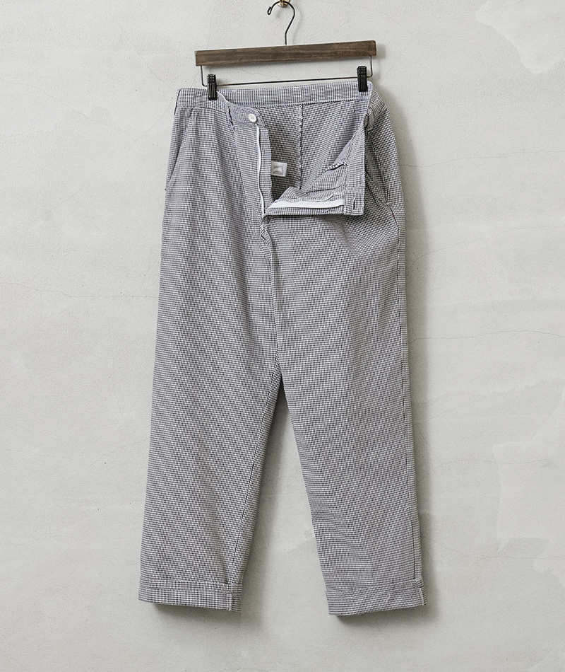 | 商品説明 | 実物 USED オーストリア軍 シェフパンツ(コックパンツ)千鳥格子 のご紹介です。 ブラックとホワイトで構成された、目の細かな千鳥柄のオーストリア軍放出のシェフパンツ(コックパンツ)。オーストリア軍のフードハンドラーが使用していたシェフパンツで、汚れが目立ちにくいギンガムチェックに似た千鳥格子柄が採用されています。 フロントには動きやすいタック入り、両サイドのスラッシュポケットとバック右側に1箇所デザインされたパッチポケットがシンプルで使いやすいデザイン。 素材には柔らかくドライな風合いが特徴のライトオンスのポリコットンを使用しており、夏でも快適に着用可能になっています。 コックの動きを邪魔しない程よいゆったり目のシルエットとライトでリラックス感のある履き心地は、ユニセックスでの着用もおススメ。 ワンマイルウェアやホームウェアとしてはもちろん、タック入りなのでキレイ目の雰囲気でも楽しめる万能パンツです。 |