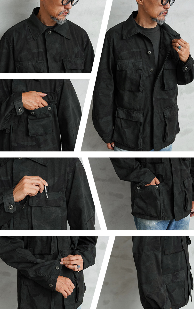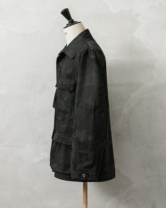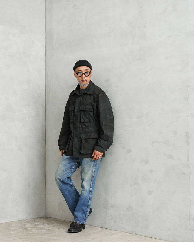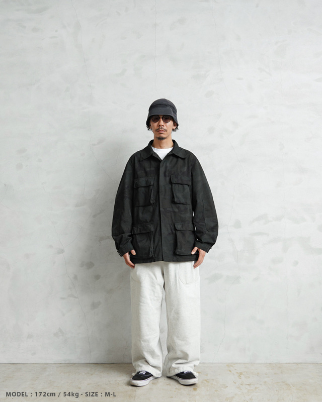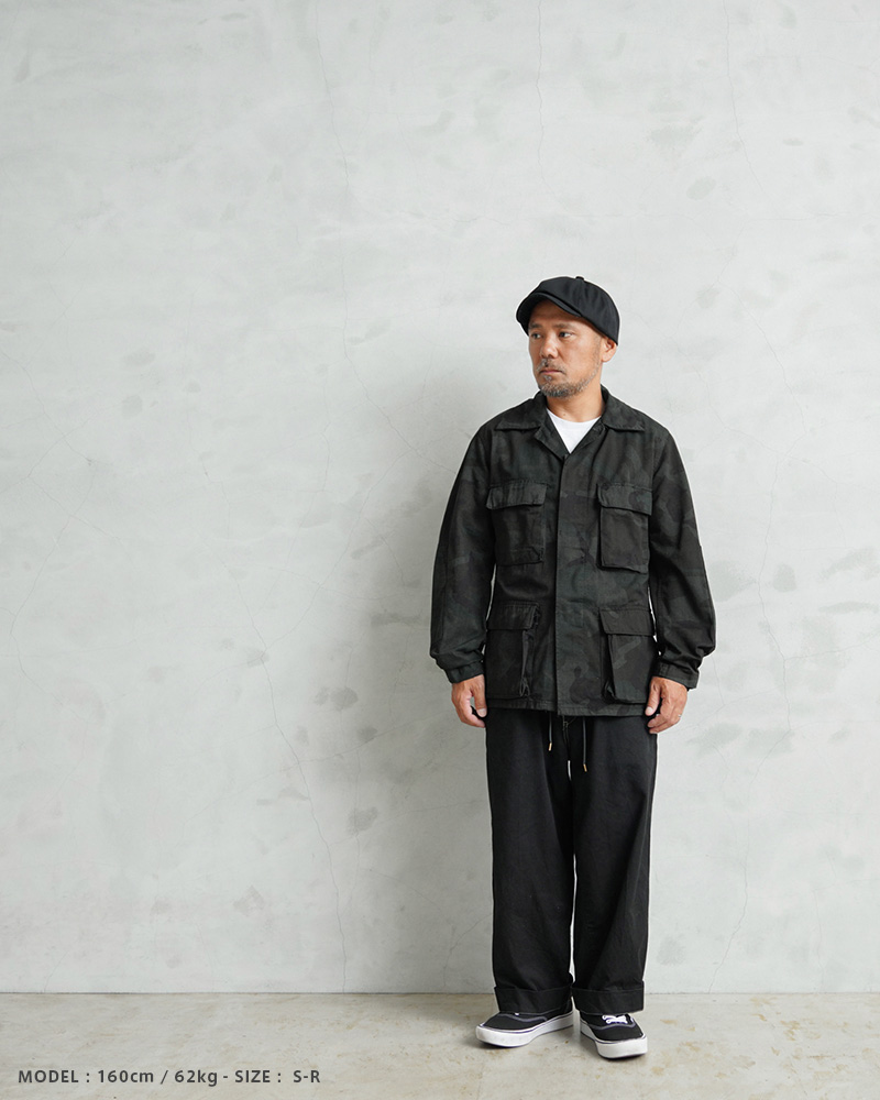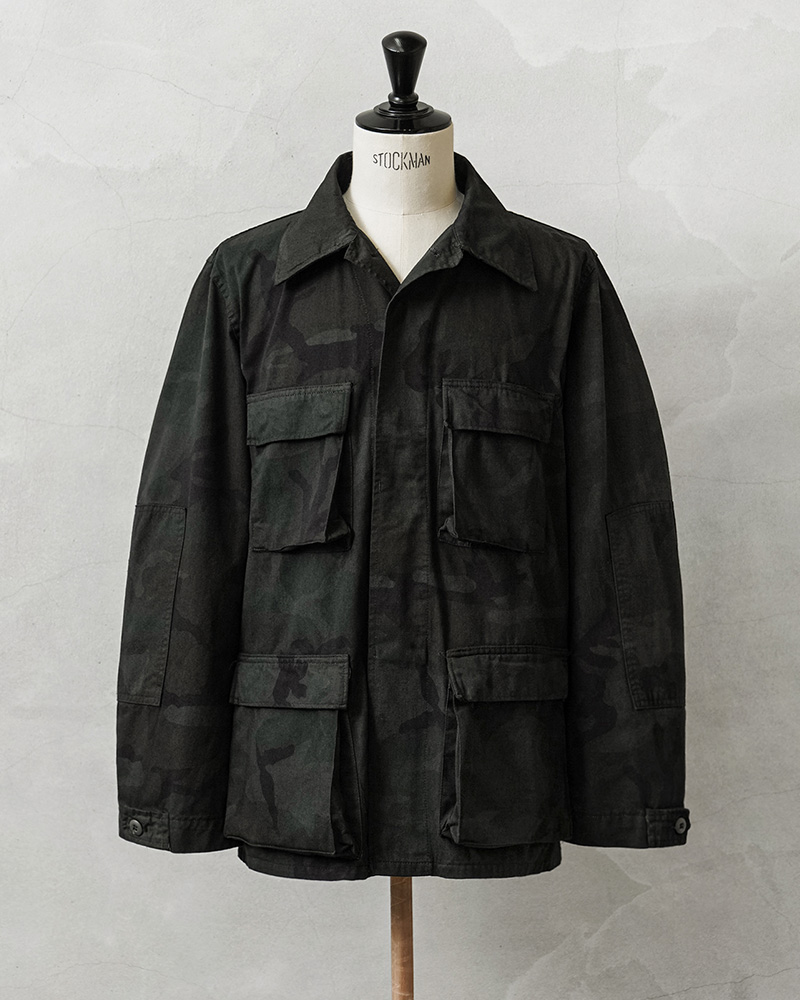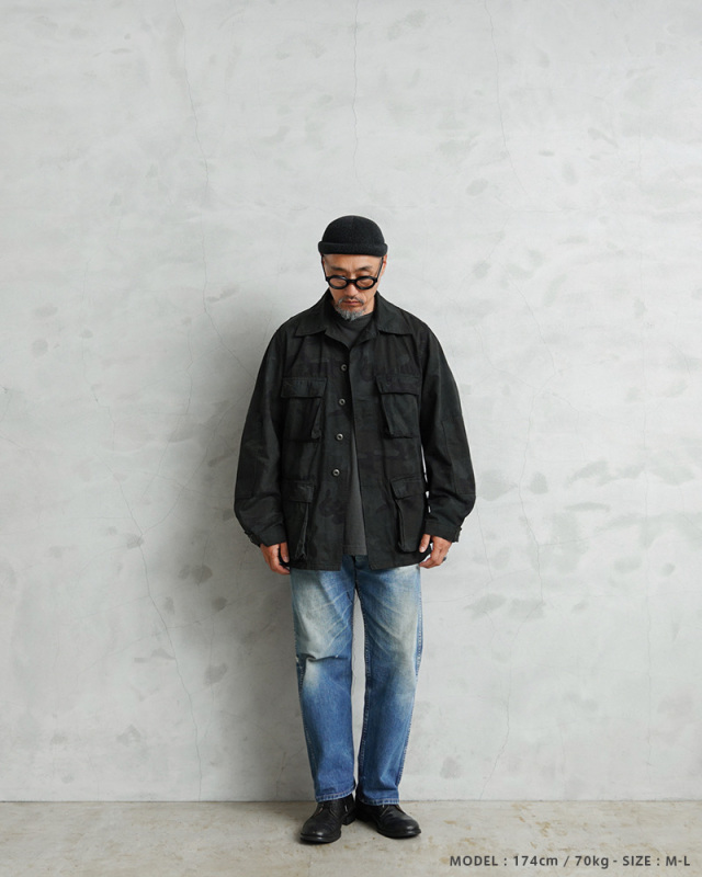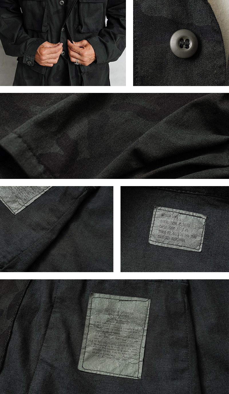 | 商品説明 | 実物 新品 米軍 BDU WOODLAND CAMO ジャケット 前期型 ノンリップ BLACK染めのご紹介です。 制式名称:COAT,COMBAT,WOODLAND CAMOUFLAGE PATTERN 1981年より約30年以上にわたり全米軍で使用され、米海兵隊では2005年、米陸軍では2008年、米空軍では2011年、米海軍では2012年まで使用されたウッドランドカモ柄のBDU(野戦服)です。その後もアメリカ陸軍特殊部隊のグリーンベレーではウッドランドのBDUジャケットが限定で継続使用されていました。 この希少なアイテムを使用し、国内の職人に依頼し製品染めを施しました。本来の迷彩柄を残すようにBLACK染めを施し、オリジナルのウッドランドデザインのうっすら浮き出ている迷彩が雰囲気抜群な仕上がりです。 こちらの前期型の特徴としては、1981年から1984年頃まで生産されたモデルで、胸ポケットのマチが内側に設けられており、襟の形状が中期、後期と比較すると大きく、袖口の調節用タブは前期、中期、後期になるにつれて幅広で短い形状へと変更されました。 BDUとは「Battle Dress Uniform」の略で、戦闘服のことであり、BDUジャケットの特徴とも言える4つのフロントポケットは2重構造のフラップがついており、ボタンが外に露出しない仕様です。4箇所のポケットはマチ付きで立体的なデザインになっています。フロントは比翼仕立てでボタンが引っかからない仕様、肘部分には補強のためにあて布がされた2重構造、袖はボタンで調節可能、左胸のポケットの内側にはペンホルダーが備わっており、細部にまでこだわり抜かれたデザインとなっています。 NYCO(ナイコ)と呼ばれるコットン、ナイロンの混紡素材が使用されており、リップストップに比べ、こちらのノンリップのツイルタイプは放出される機会が少ない印象です。リップストップとノンリップは同じデザインでも雰囲気が変わりますので、その日の気分でお好みのタイプをセレクトして下さい。 米軍のアイテムとして代表的なBDUジャケットですが、近年放出が少なくなり、年々希少価値が上がっており、入手することが非常に困難になってきたアイテムの1つです! まさに今から40年以上前に製造された、新品未使用のデッドストック品です!ここまでコンディションの良いウッドランドBDUジャケットは、今後ますます出会う機会が減っていくことでしょう。この機会をお見逃しなく! |