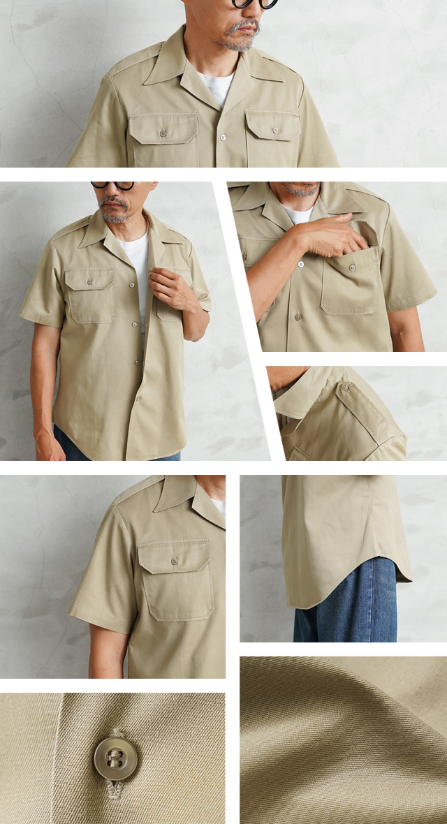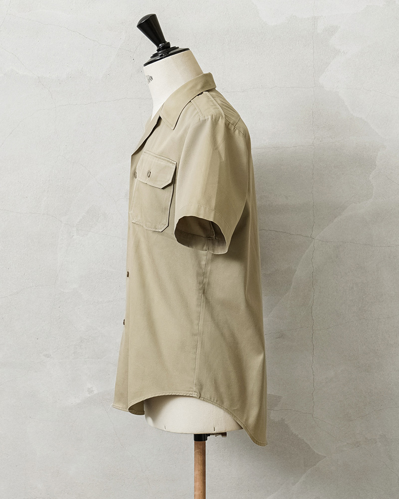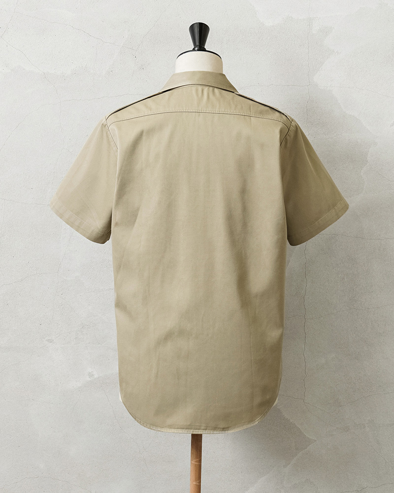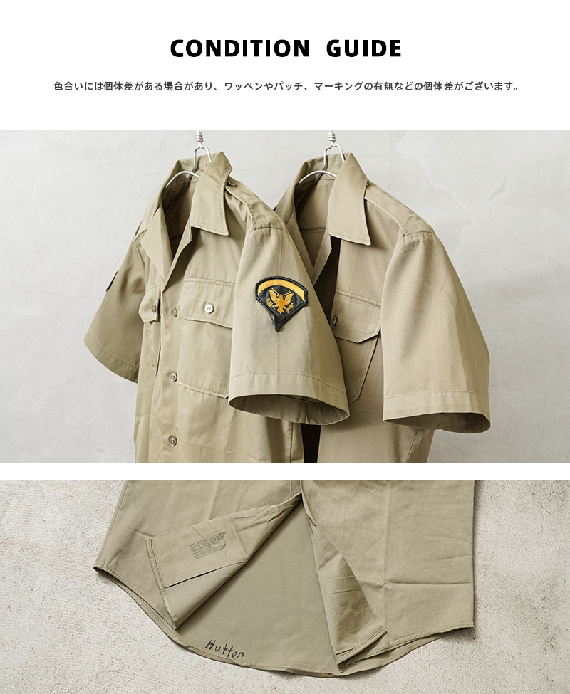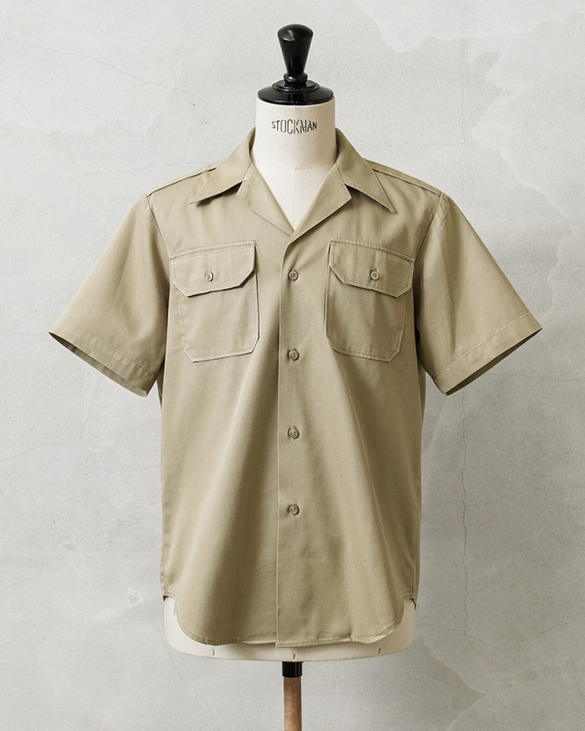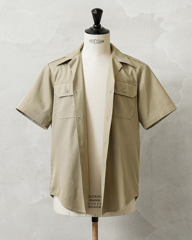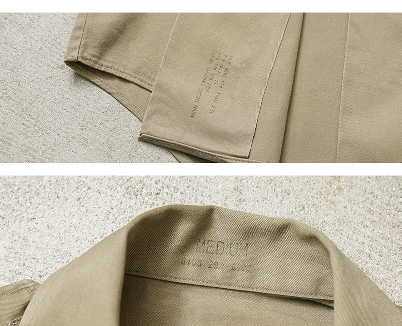 | 商品説明 | 実物 USED 米軍 M-46 ショートスリーブ カーキシャツ ポリコットンのご紹介です。 制式名称:SHIRT MENS CTN KHAKI S/SL 米軍から熱帯地域での着用を目的として採用されていたコットンカーキシャツが入荷しました。年代が古いためにUSEDで放出されることも少ないヴィンテージカーキシャツです! 70年代頃を中心とした入荷で年代は様々ですが、それぞれが古い年代で希少価値が非常に高いアイテムです。手に取ると分かる既製品では味わえないのハリのある丈夫なポリコットン素材で、耐久性や速乾性が高められ、着込むほどに風合いの良い経年変化も楽しめます。 全階級共通の仕様で、当初、夏季戦闘服として採用されたカーキシャツでしたが、次第に戦闘用からユーティリティシャツやオフィサーシャツとして着用されるようになりました。 シンプルなデザインのミリタリーシャツで、フロントに2箇所のボタン留めのフラップポケットと肩にはエポレットが備わり、裾はサイドから大きくラウンドしたデザインのディテールなどこの辺の絶妙なバランスもポイントです。ベーシックなアイテムだからこそ現代でも多くの場面で使える汎用性の高いデザインです。 アメリカのみならず世界中を探してようやく見つけることができたアイテムだからこそ年代や状態も異なり、ワッペンやマーキング、色目や状態、どれも表情豊かで、それぞれから味のあるヴィンテージの魅力を感じていただけると思います。USEDでの入荷ですが、これから更に着込んでいただくことによりご自身のスタイルに合わせて様々な表情を見せてくれる素晴らしい1枚です。 |
