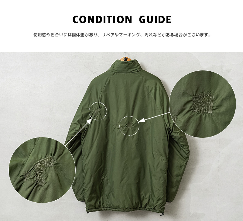 | 商品状態 | 軍放出のUSED ※製造年代などによりタグの仕様や表記は異なる場合がございます。また、使用感や色合いには個体差があり、リペアやマーキング、汚れ、着用時には見えない箇所にマーキングがされている場合がございます。商品の状態についてご指定いただくことは出来ませんので予めご了承ください。 |