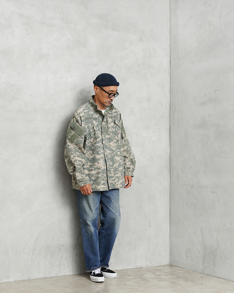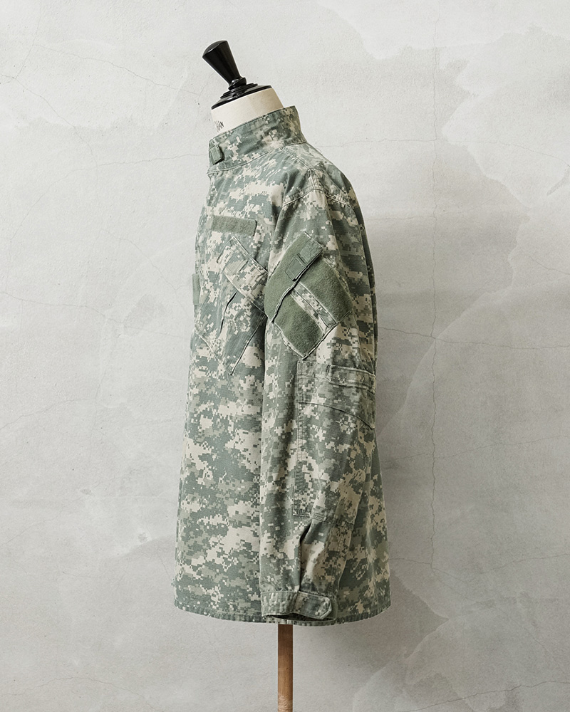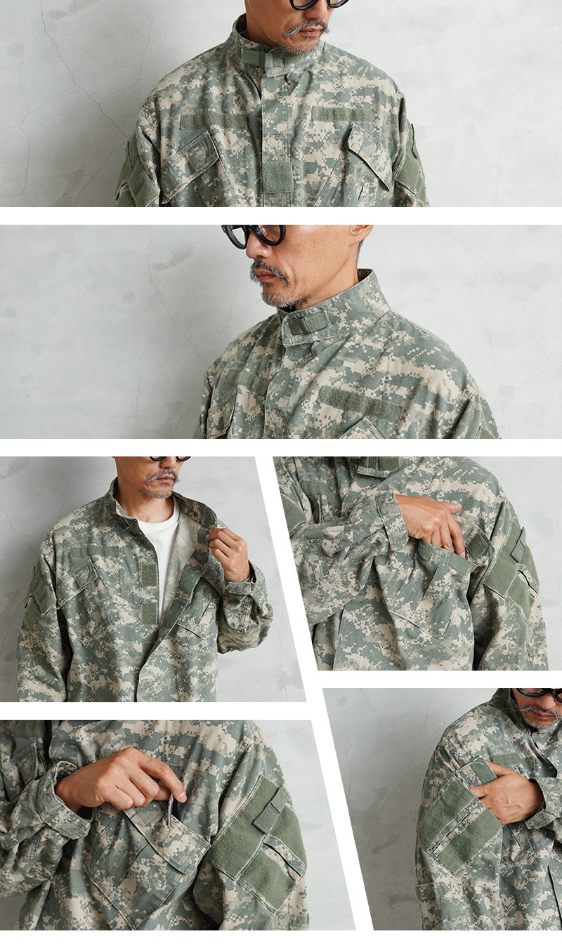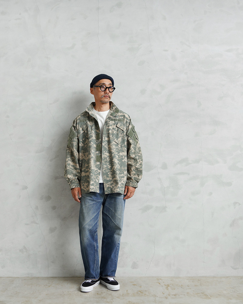 | 商品説明 | 実物 USED 米軍 U.S. SPECIAL FORCES PARACLETE(パラクレイト)SOF BDU ジャケットのご紹介です。 制式名称:COAT,SOF BATTLE DRESS UNIFORM 米軍特殊部隊や連邦法執行機関の特殊部隊にプロフェッショナルウェア&ギアを供給していたPARACLETE(パラクレイト)が手掛けた、UCP迷彩の特殊作戦部隊(Special Operations Forces)SOF BDUジャケットです。 2000年代に製造されたこのモデルは、その優れた実用性と耐久性から後に多くのメーカーが製造することになりますが、クオリティとステータスの両面で最高峰とされるのは、やはりPARACLETE製に他なりません。 特殊部隊向けに開発された戦闘服で、一般的なアメリカ軍のBDU(Battle Dress Uniform)をベースにしつつ、より実戦的な改良が加えられています。 チンスト付きのスタンドカラーに、フロントはボタンやベルクロで開閉、斜めに配置されたベルクロ開閉の胸ポケット、両袖のユーティリティポケット、肘にはエルボーパッド収納用のポケットも備わったデザインです。袖口はベルクロでの調節が可能です。すでに納入も生産も完了したレアアイテムですので、ここまでのサイズバランスでまとまった数量を手に入れるのは今後も困難かと思います。 生地はコットンポリのリップストップを採用し、軍規格に準じた耐久性を実現しています。UCP(Universal Camouflage Pattern)のデジタルカモフラージュは、著名人にも愛用される人気の迷彩パターンです。 |