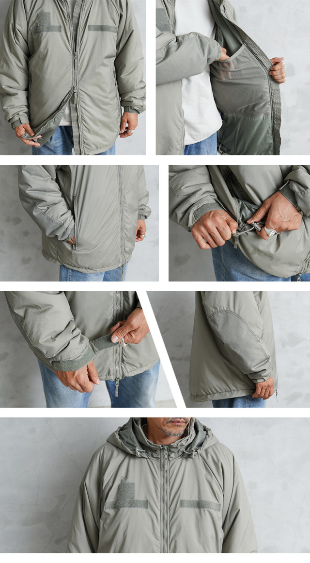 | 商品説明 | リジェクト 訳あり品 実物 USED 米軍 ECWCS Gen III Level 7 ジャケット URBAN GREYのご紹介です。 制式名称:PARKA,EXTREME COLD WEATHER(GEN III) 米軍 ECWCS 第三世代(ジェネレーション3)は7種類のトップスと5種類のボトムから構成された、様々な気候やシチュエーションに対応するレイヤリングシステムです。 実物本物のLevel 7ジャケットです。コントラクター別に選べるように、「WILD THINGS」が「JADE APPAREL INC」に製造委託を行い、軍に納入された最も人気で価値の高いアイテムをセレクトしました! このLevel 7はレイヤリング最終防寒アウターとして、中綿には米国ALBANY社がU.S.ARMYのためにスリーピングバッグの中綿として開発した、PRIMALOFT(プリマロフト)を使用。 暖かさの点でグースダウンに匹敵し、さらに湿気の存在下でも熱を保持する合成断熱材として広く使用されています。 ダウンウェアと違い、羽が飛び出したり手入れに手間がかかる事がなく、洗濯機で洗えて軽量でやわらかな風合いが特徴。また、シェルに軽量透湿通気性超撥水生地を使用し、フィルムコーテイング素材特有のゴワつきもなく、着心地も快適です。 フードは襟に収納可能で、肘は補強されています。フロントはダブルジッパー仕様で、ジッパー開閉のサイドポケット内には裾を絞れるドローコード付き。メッシュ素材のインナーポケットや袖先はベルクロで調節可能なシンプルで洗練されたディテールです。 とにかく暖かく、真冬の防寒には申し分ないですし、合わせやすいデザインが人気に火をつけ、非常に人気が高く、アメリカ国内でも品薄で手に入らなくなってきました。入手困難な状況に伴い、価格も高騰し続けています。 あるうちに買っておいたほうがいいミリタリーアイテムの一つだと思います! ジッパー破損や破れや激しい汚れなどの全体的に不具合のある商品を選別しております。多少のリペアを施していただいてからの着用、もしくはリメイク資材としてもおすすめです。ファーストクオリティの品質を強くお求めの方は念の為ご購入をお控えくださいますようお願い致します。 |