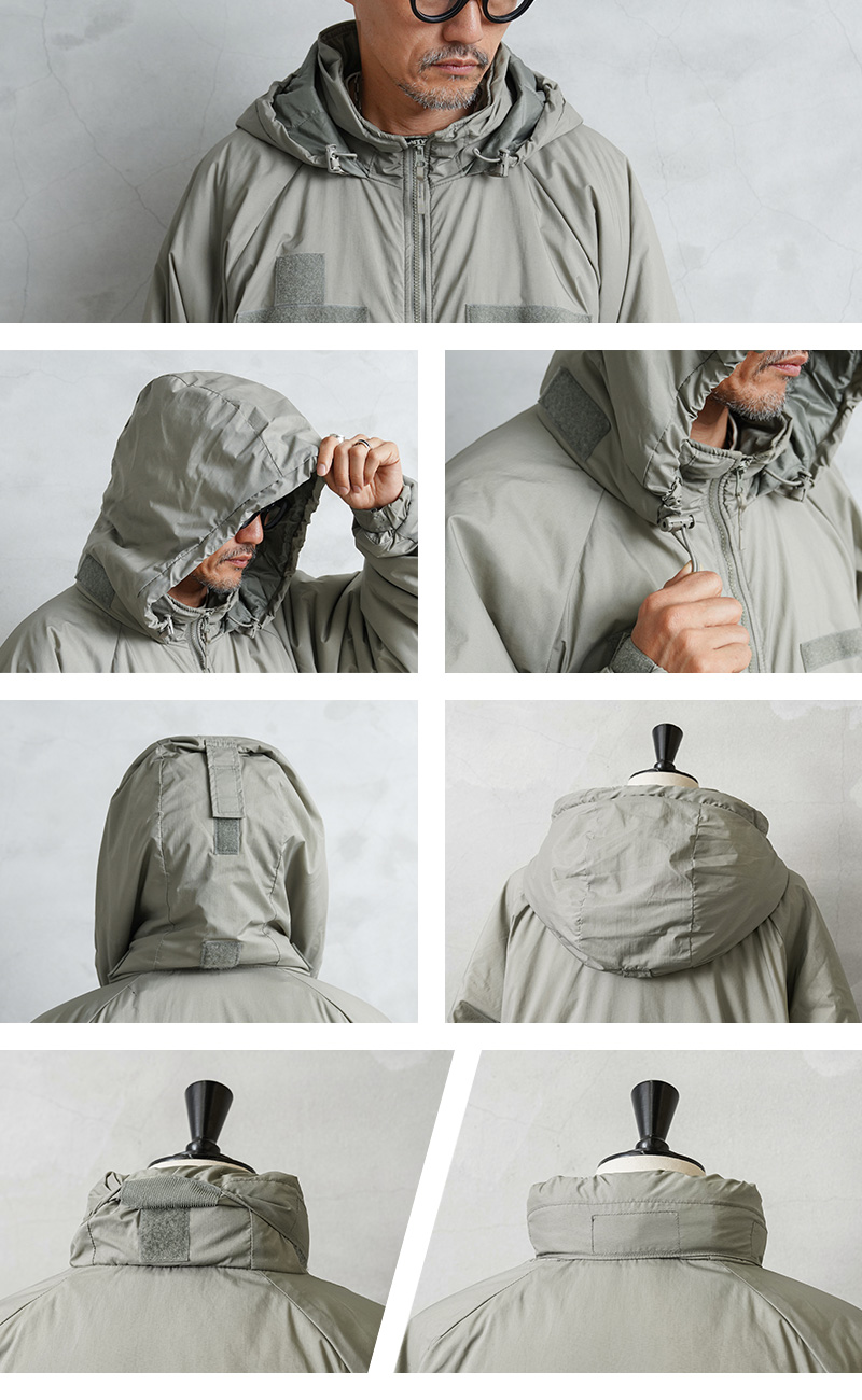 | 素材 | シェル:PLAIN WEAVE NYLON(軽量透湿通気性超撥水生地) 中綿:PRIMALOFT(プリマロフト) |