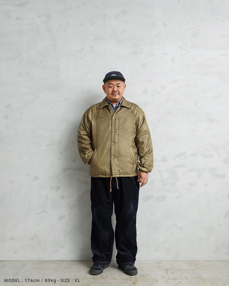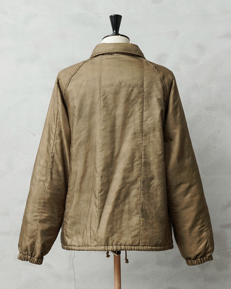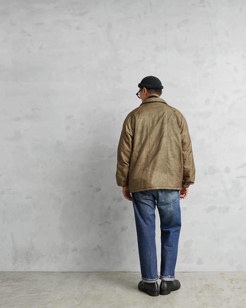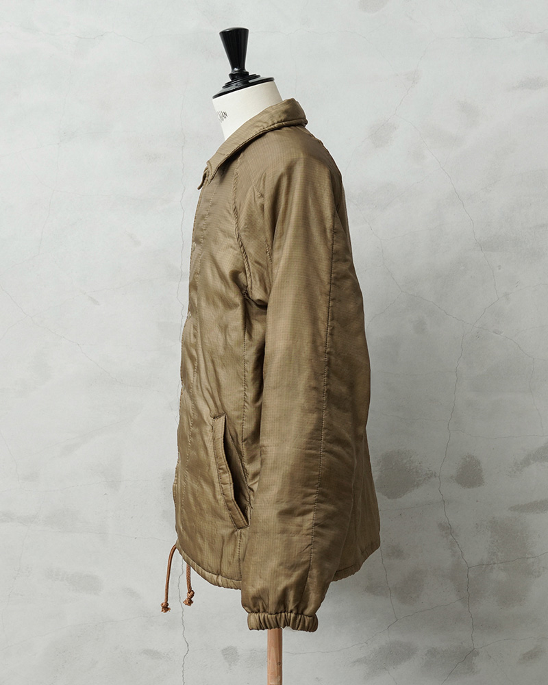 アウターとしてはもちろん、真冬にはヘビーアウターの下に着れば保温性を高めるライナーとしても活躍します。実物品をコーチジャケットへとリメイクした、他では手に入らないコーデの幅を広げてくれるアイテムです。